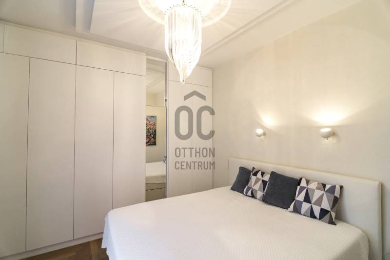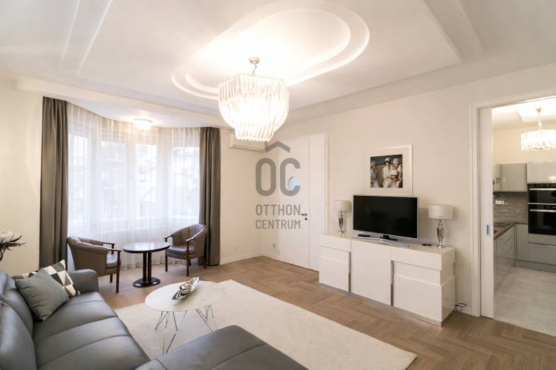 Közvetlenül a Szent István Park mellett kínálunk megvételre egy 4. emeleti, háromszobás saroklakást, amelynek egyik legnagyobb értéke a kivételes elhelyezkedés és a több irányba nyíló panoráma. A lakásból egyszerre élvezhető a Szent István Park zöld látványa, a Duna panorámája, valamint a Pozsonyi út klasszikus eleganciája – ez a ritka adottság teszi igazán különlegessé ezt az ingatlant.A saroklakás néhány éve teljes körű műszaki és esztétikai felújításon esett át, belsőépítész tervei alapján. Az enteriőrt egyedi gyártású ajtók, bútorok és igényes burkolatok határozzák meg, a gondosan megválasztott világítási elemek, köztük a karakteres csillárok pedig elegáns, kifinomult hangulatot teremtenek.A biztonsági bejárati ajtón belépve egy tükrös beépített szekrénnyel ellátott előszoba fogad, innen nyílik a zuhanyzós fürdőszoba és az étkező, ahol szintén egyedi tervezésű, letisztult bútorok kerültek beépítésre. A közlekedőből további fürdőszoba érhető el, majd a lakás központi tere, a tágas nappali következik, amelyet nagy ablakfelületek, stílusos álmennyezet és halszálkás mintában lerakott fa parketta tesz igazán karakteressé. A nappaliból nyílik a két erkélyes hálószoba, amelyek tovább erősítik a lakás világos, átgondolt térélményét.Az ingatlan távfűtéssel rendelkezik egyedi méréssel, a korszerű fűtőtestek megjelenésükben a klasszikus stílust idézik, miközben megfelelnek a mai elvárásoknak.Újlipótváros nem csupán lokáció, hanem egy stabil értéket képviselő életérzés, ahol a park közelsége, a Duna látványa és a városrész hangulata hosszú távon is kiemelkedő értéket biztosít. A környék egyik ismert sajátossága a parkolás nehézsége, ugyanakkor ennél az ingatlannál megoldást jelent, hogy a lakástól mindössze 2 percre teremgarázs beálló is elérhető, amely külön, 15 millió forintért megvásárolható.Az ilyen adottságú, panorámás saroklakások ritkán kerülnek piacra ezen a környéken – érdemes személyesen is megtekinteni!A képek között látványtervvel minimalista burkolattal is megmutatjuk a konyhát - étkezőt. Az eredeti és a tervezett állapot egymás után látható.