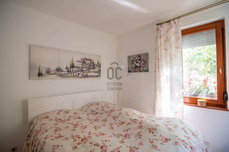Hangulatos Újszerű lakás Kertkapcsolattal és Kocsibeállóval a Rókahegy lábánál!Eladó egy hangulatos újszerű földszinti lakás kertkapcsolattal, terasszal és kocsibeállóval a Rókahegy lábánál! Holtig tartó haszonélvezettel terhelt lakás.A harmadik kerület szívében hangulatos tó mellett eladó ez a tökéletes közepes méretű lakás, egy 2005 - ben épült 4 lakásos Önálló kerttel rendelkező társasház földszinti részén.A lakás teljesen privát megközelítésű, tehát a társasház mellett elhaladva külön bejárattal rendelkezik. Az egész társasház környéke nagyon hangulatos, illetve maga a kert is rendkívül gondozott. Szép sövény, gondozott fák, privát kertrész jellemzi.A lakás 2 hálószobás illetve egy dolgozószobával is rendelkezik, a nappalit világos falig érő szigetelt ablakok jellemzik. A nappaliból egy nagy 14 nm es teraszra érkezünk mely kiválóan alkamas sütögetésre, illetve kerti partikra.A lakáshoz tartozó privát használatú kert kb 180 nm.A telken összesen két ilyen társasház található de a második csak két lakásos. A telek végében egy még nagyobb - már közös használatú kertrész található, ahol nyitott privát kocsibeállóhely is tartozik a lakáshoz.A lakás jól felszerelt modern, klímás lakás.FONTOS, hogy Holtig Tartó haszonélvezettel eladó! Egy kedves aranyos házaspár lakja!Érdeklődni csak Nálam!