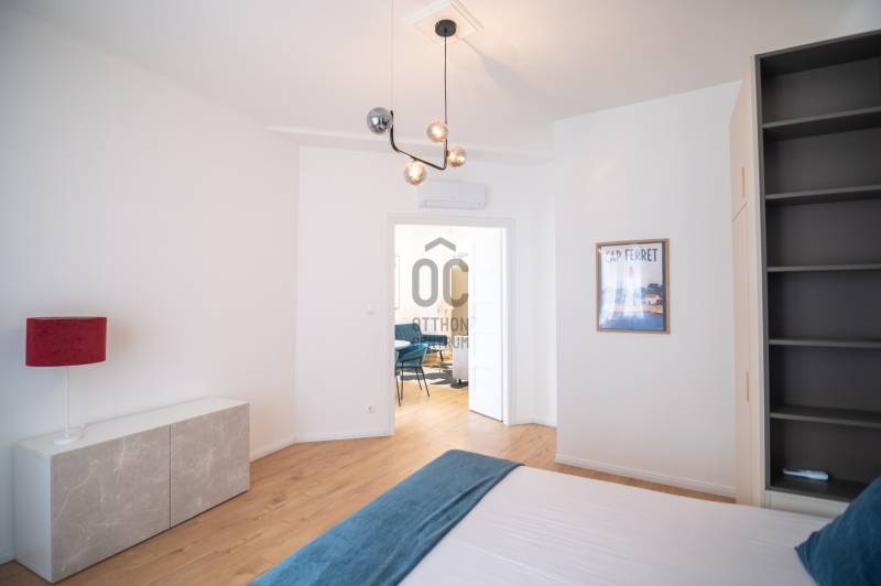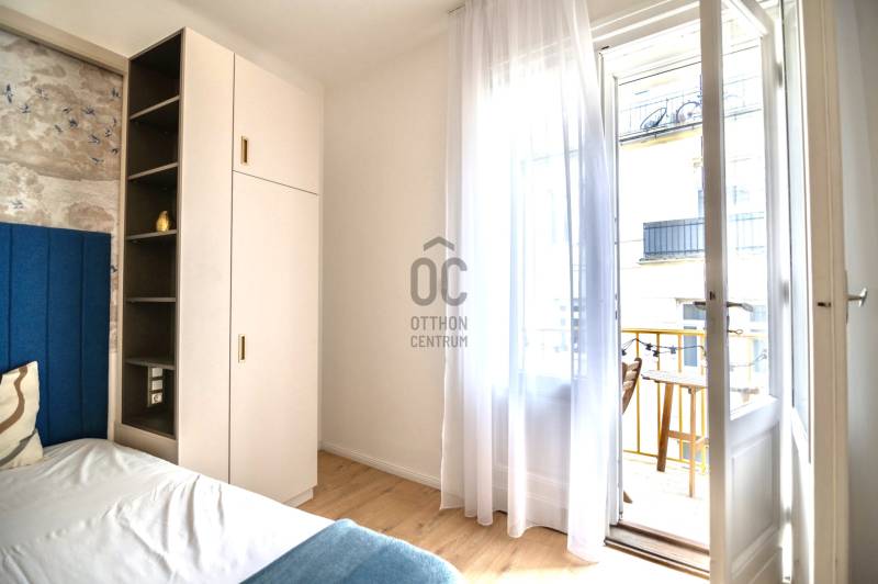 Budapest belvárosában, az V. kerületben, a sétáló Váci utca közvetlen közelében, a Nyáry Pál utca csendes és elegáns szakaszán eladó egy egyedülálló, teljes körűen felújított, 89 m²-es, erkélyes lakás.Központi elhelyezkedése ellenére az utca ezen része gyalogos, rendkívül nyugodt, így a lakás ritka kombinációját nyújtja a városi életnek és a meghitt nyugalomnak.Építészeti értékkel rendelkező házAz épület 1933-ban épült, tervezője Györgyi Dénes, a kivitelezést Sorg Antal vezette – koruk meghatározó alakjai.A ház építészete a modernizmus és a klasszikus elemek kifinomult ötvözete. A homlokzat különlegessége az elliptikus, homorú francia udvar, amely egyedi karaktert és rangot ad az épületnek.Az épület kívül-belül kiváló állapotban van, modern panorámalifttel, rendezett, reprezentatív lépcsőházzal és nyugodt, intelligens lakóközösséggel rendelkezik.Fény, tér és lenyűgöző kilátásA lakás a 4. emeleten található, ennek köszönhetően rendkívül világos.Az utcai 2 m²-es erkélyről ritka és lenyűgöző panoráma nyílik a Gellért-hegyre és a Szabadság-szoborra – olyan kilátás, amely egész évben értékálló és soha nem beépíthető.Elrendezés és felszereltségTulajdoni lapon szereplő alapterület: 89 m² + erkélyEgy légtérben kialakított nappali–étkező–konyhaKét különnyíló, tágas hálószobaKét fürdőszobaBeépített infravörös szaunaUtcára néző ablakokNappaliban és hálószobákban modern hőszivattyúk (hűtés–fűtés)Fűtés: házközpontiKözös költség: kb. 55 000 Ft, amely tartalmazza a fűtést és a vízfogyasztástMeleg vizet két energiatakarékos bojler biztosítjaMinőség, stílus és kényelemTeljesen megújított elektromos és vízvezeték-hálózatEredeti fa nyílászárók korszerű hőszigetelésselA lakás teljes bútorzattal és gépesítve kerül eladásraEgyedileg gyártott bútorok, prémium kész megoldásokMagas minőségű burkolatok, Carrara márvány munkapultokA nappaliban bioetanol kandalló a meghitt hangulatértElektromos redőnyökRiasztórendszerElhelyezkedés, ami önmagáért beszél5 perc sétára a Duna-partKözel a Fővám tér és a NagyvásárcsarnokFerenciek tere és Kálvin tér metróállomások 5 percen belülA szomszéd utcában bérelhető mélygarázsKávézók, éttermek, üzletek, kulturális és történelmi látnivalók a közvetlen közelbenElit, biztonságos és presztízs értékű környék, ideális saját célra és prémium befektetésnek isAzonnal költözhetőA lakás tehermentes és azonnal birtokba vehető – tökéletes választás azok számára, akik a minőséget, az építészeti értéket, a panorámát és a kifogástalan lokációt keresik.Szívesen válaszolok kérdésekre és megszervezem a megtekintést.