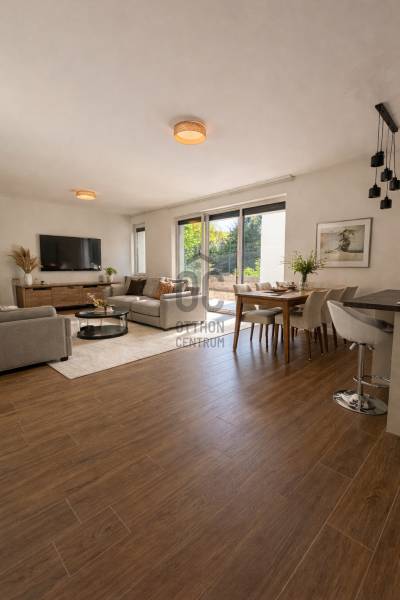 76 m² | 13 m² terasz | saját kert | garázs + tároló | hőszivattyú | azonnal költözhetőAz ingatlan leírásaEladó Törökkőn, egy vadonatúj, négylakásos társasház földszintjén elhelyezkedő, 76 m²-es, kertkapcsolatos lakás.A lakáshoz tartozik egy 13 m²-es tágas terasz, egy saját, elkerített kertrész, valamint a terem garázsban egy beállóhely és egy önálló, zárható tároló.A lakás soha nem lakott, azonnal költözhető, modern és fiatalos stílusban került kialakításra.A belső tér tágas nappali–étkező–konyha együttesből, két hálószobából, külön fürdőből és mellékhelyiségből áll. A konyha vadonatúj, beépített konyhabútorral és konyhaszigettel rendelkezik, a gardróbok szintén beépítettek.⚙️ Műszaki felszereltség-Hőszivattyús padló- és mennyezetfűtés – energiatakarékos, egyenletes hőérzet-Mennyezethűtés – a nyári hónapokban klímakomfort zaj és huzat nélkül-Műanyag, hőszigetelt nyílászárók-Videós kaputelefon-Beépített konyhabútor konyhaszigettel-Teljesen felszerelt fürdő és mellékhelyiségek szaniterekkel-Beépített gardróbszekrények-Saját, zárható tároló + garázshely a mélygarázsbanA lakás minden eleme új, soha nem használt, a színek és burkolatok modern, letisztult, trendi árnyalatokban készültek.A környék leírásaA társasház Óbuda egyik legkedveltebb, családbarát részén található.Csendes, zöldövezeti utcák, kis forgalmú zsákutcák és barátságos hangulat jellemzi a környéket.A mindennapi élethez szükséges szolgáltatások kényelmes sétával elérhetők:-Lidl – 2 perc-Tesco, Posta, Jysk – 4 perc-busz megálló – 2 perc séta (kapcsolat a fonódó villamoshoz, Flórián térhez)-GoBuda Center, Stop Shop, Media Markt, Praktiker – 2 buszmegálló, autóval 5 percA közelben kirándulóhelyek, lovardák, iskolák és óvodák találhatók – kiváló infrastruktúrával rendelkező, biztonságos, nyugodt lakókörnyezet.LakóközösségA négylakásos ház csendes, rendezett és családias közösségű.Az SZMSZ állatbarát, tehát kiskutya és cica hozható – ideális választás kisállat-tartóknak is.A társasház karbantartott, igényes, hosszú távra tervező tulajdonosokkal.Kinek ajánljuk?Ez a lakás ideális választás azoknak, akik:-új építésű, azonnal költözhető otthont keresnek,-nem akarnak felújítással bajlódni,-fontos számukra a kertkapcsolat, a nyugalom és a modern technológia,-vagy befektetésként keresnek könnyen kiadható, értékálló ingatlant.✨ Összefoglaló✅ 76 m² földszinti lakás✅ 13 m² terasz + saját kert✅ Hőszivattyús padló- és mennyezetfűtés, mennyezethűtés✅ Beépített konyhabútor és gardrób✅ Videós kaputelefon, új szaniterek✅ Saját tároló + garázshely✅ Csendes, családias környékHa egy modern, minőségi otthont keresel, ahol minden részlet a kényelmedet szolgálja, hívj bizalommal – ez az ingatlan Téged vár!