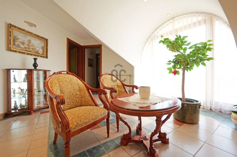 PANORÁMÁS CSALÁDI HÁZ ELADÓ PILISCSABA KLOTILDLIGETEN!Kivételes adottságok – Lenyűgöző kilátás – Kifinomult minőségEz a páratlan adottságú ingatlan a festői szépségű Piliscsaba Klotildliget egyik legszebb pontján, ahonnan lélegzetelállító panoráma tárul elénk a településre és a környező hegykoszorúra.Főbb jellemzők:Telek: 1 629 m², gondozott, parkosított kert, több száz dísznövénnyelLakóépület: 1991-ben épült, összesen 256 m² alapterületNapelem rendszerKiváló minőségű építőanyagok:Egyedi méretű, háromrétegű üvegezésű Hoffstadter fa nyílászárókIgényes belsőépítészeti megoldásokPinceszint / utcaszint:47,6 m²-es kétállásos garázsTágas előtérVendéglakrész: kiskonyhával és fürdőszobával20 m²-es raktár + 13,5 m²-es háztartási helyiség beépített szekrénnyelFöldszint:Itt helyezkedik el a szülői hálószoba, saját gardrób szobávalImpozáns, több mint 5 méteres belmagasságú nappali félköríves kialakítássalEgyedi tervezésű csillár és hangulatos kandallóGépesített, egyedi gyártású konyha és külön étkező, nyitható üvegfallalKözvetlen kijárat a panorámás teraszraTetőtér: Két hálószobaTágas galéria, kijárattal a másik teraszraLokáció:Piliscsaba Budapesttől mindössze 25 km-re találhatóKiváló közlekedés: autóval a 10-es főúton, illetve vasúti elérhetőség az Esztergom–Budapest vonalonCsendes, természetközeli környezet, mégis jól megközelíthető elhelyezkedésNe hagyja ki ezt az egyedülálló lehetőséget!Ideális választás mindazoknak, akik nyugalomra, térre és páratlan kilátásra vágynak – kompromisszumok nélkül.Ha szeretné megtekinteni vagy további információt kérne, keressen bizalommal!