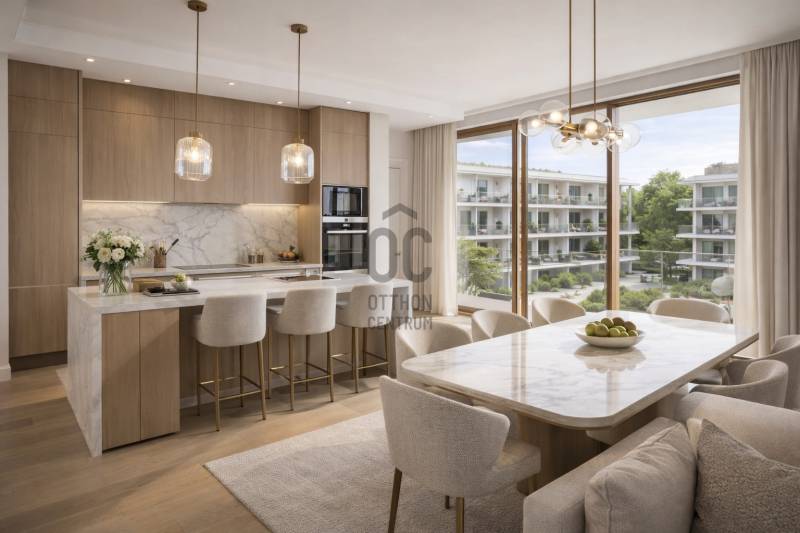 Projekt bemutatásaFontos: Az árak magasszintű kulcsrakész kivitelezést tartalmaznak, szemben a Balatonfüreden alkalmazott emelt szerkezetkész kivitelezéssel szemben!Szerkezet kész kivitelezés választása esetén kérjen egyedi árat!A terület a patak és a Fürdő utca között húzódik, melyek ezt keletről valamint nyugatról határolják. A nyugati teleksáv az urbánus szövetbe épül (amely szervesen köti a Balaton körüli történésekhez), míg a patak közelsége (és a hozzá tartozó fauna) egy intim, egyedi hangulatot kölcsönöz a nyugati telekrészletnek.Kényelem és luxus- hatalmas zöldfelületek- zárt szabadidőpark- gyerek és felnőtt medence- kültéri szaunaház- játszóterek- sétányok- zárt mélygarázsokFedezd fel ezt az exkluzív, új lakást Balatonfüreden, amely ideális választás családosok számára! I ütemben 4 tömböl értékesítjük a lakásokat, szerződés kötés megkezdődött20 db 75 m2 lakás 38 m2 terasszal 1.750.000 FT bevezető áron25 db 98-105 m2 lakás 46,5 m2 terasszal 10 db penthouse lakás 175 m2 85 m2 terasszalII ütemben előjegyezhető lakások7 db 42 m2 lakás 26 m2 terasszal7 db 61 m2 lakás 30 m2 terasszalÜzletekA lakásokban, hőszivattyús fűtés biztosítja a kellemes meleget télen, nyáron a hűtést, tágas a teraszok és a közeli medencés társasház területe ideális helyszín a pihenésre. A lakópark, ahol a lakás található, nemcsak modern, hanem biztonságos és csendes környezetet is kínál, amely tökéletes a gyerekek számára. A gyönyörű zöldövezeti környezet és a barátságos szomszédság garantálja, hogy otthonod valóban a családod középpontja legyen. Az okos otthon rendszer lehetővé teszi, hogy könnyedén irányítsd lakásod különböző funkcióit, így még kényelmesebbé téve mindennapjaidat. A környék kiváló közlekedési lehetőségekkel rendelkezik, hiszen a helyi tömegközlekedés gyors és kényelmes eljutást biztosít Balatonfüred központjába, ahol számos bolt, étterem és szórakozási lehetőség vár rád. Az autós közlekedés is egyszerű, hiszen a közeli főutak gyorsan elérhetők, így könnyedén felfedezheted a Balaton körüli gyönyörű tájat és a környező településeket. Balatonfüred nemcsak a vízparti élményekről híres, hanem kulturális programjairól és rendezvényeiről is. A városban található gyönyörű sétányok, parkok és a híres Tagore sétány mind hozzájárulnak a hely varázsához. A családok számára ideális környezetet biztosít, hiszen a közelben iskolák, óvodák és sportolási lehetőségek is találhatók. Ez a lakás nem csupán egy ingatlan, hanem egy életstílus, amely a Balaton közelségét és a kertvárosi nyugalmat ötvözi. Ha bármilyen kérdésed van, vagy szeretnéd megtekinteni ezt a csodás otthont, bátran keresd fel a megadott elérhetőségeket! Ne hagyd ki ezt a páratlan lehetőséget, hogy családod számára egy igazán különleges helyet találj!