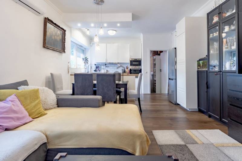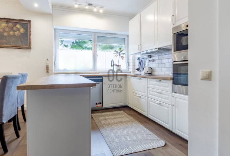 XII. kerületben, Farkasvölgyben, Mártonhegy határán, zöld környezetben keresi új tulajdonosát egy földszinti, 4 szobás, 80 m2-es lakótérrel, 27 m2-es terasszal, kerttel és 2 autóbeálló hellyel rendelkező lakás. Ha jó presztízsű, értékálló környéken szeretné megtalálni hangulatos új otthonát, akkor ezt feltétlenül nézze meg!KÖRNYÉK és KÖZLEKEDÉS:- XII. kerület déli része, Farkasvölgy.- Kifejezetten zöld, jó infrastruktúrával rendelkező, nagyon kedvelt környék.- A lakástól néhány percre elérhető iskola, óvoda, gyógyszertár, zöldséges, játszótér és pékség is.- A MOM Park, a Hegyvidék Központ, az Etele Pláza és Gazdagrét bevásárlási lehetőségei autóval pár perces távolság.- Az 53-as busz 1 perc sétatávolságra van, amellyel Kelenföldön elérhető a 4-es metró.- Márton Áron téren átszállhatunk az 59-es villamosra és a 8-as buszra amelyekkel a belváros könnyen megközelíthető.- Az M1-es és az M7-es autópályák öt percen belül elérhetőek.- A Sas-hegy és a Széchényi-hegy kiránduló útvonalai a közelből indulnak.- Az utcában a parkolás díjmentes.TÁRSASHÁZ:- 1943-ban épült, 1 szintes, 3 lakásos téglaépület.- Műszakilag rendszeresen karbantartott társasház, gondozott kerttel, kulturált lakóközösséggel.- Homlokzata szigetelt, jó állapotú.- A kertben öt gépkocsi részére beálló helyeket alakítottak ki, amelyből kettő tartozik a lakáshoz.LAKÁS:- Földszinti, 80 m2-es, 4 szobás, 27 m2-es terasszal rendelkező, esztétikailag frissen felújított ingatlan.- Felosztása: előszoba, amerikai konyhás nappali és étkező, 3 hálószoba, 1 fürdőszoba-wc, külön wc, tároló.- Tájolása észak-keleti, a nappali és a 12 m2-es hálószoba ablakai a gondozott utcafronti előkertre néznek.- A műanyag nyílászárók hang és hőszigeteltek, elektromos alumínium redőnyök gondoskodnak az árnyékolásról.- Az összes helyiséget vinyl padlóval burkolták, a belmagasság 270 cm.- Fűtését kondenzációs kazán látja el, a hő-leadást radiátorok biztosítják, a fürdőszobába törölközőszárítót is szereltek.- A hűtésről hűtő-fűtő klíma gondoskodik.- A vastag falak télen-nyáron tartják az ideális hőmérsékletet.- A villany-, a víz-, és a gázfogyasztás egyedi mérés alapján fizetendő, a lakás fenntartási költsége kedvező.- Az ingatlanhoz tartozik egy 27 m2-es terasz, amelyről néhány lépcső vezet a kertbe.- Ezenkívül az alagsorban egy körülbelül 6 m2-es tároló is rendelkezésre áll.-A két autóbeálló ára 10.000.000 Ft., amelyet a hirdetési ár nem tartalmaz.AZ INGATLAN MEGTEKINTHETŐ:- Személyesen- Online személyes bejelentkezésselFINANSZÍROZÁSI KÉRDÉSEKBEN – ONLINE IS – SEGÍTÜNK!- Bank-független hitelcenterünk díjmentesen versenyezteti az összes bank és hitelintézet ajánlatát.- Önnek csak annyi a dolga, hogy egyeztet munkatársunkkal, majd kiválasztja a hosszú távon is legkedvezőbb konstrukciót.- Szakértőink 20+ év tapasztalattal, fogyasztóbarát lakáshitelekkel, babaváró hitellel és teljes körű CSOK Plusz és OTTHON START program ügyintézéssel várják.- Időpont-egyeztetéssel munkaidő után is elérhetők.Hangulatos és igényes ingatlan, ajánlom korosztálytól függetlenül kiváló adottságai miatt.Kérdés esetén és megtekintési időponttal kapcsolatban várom hívását!