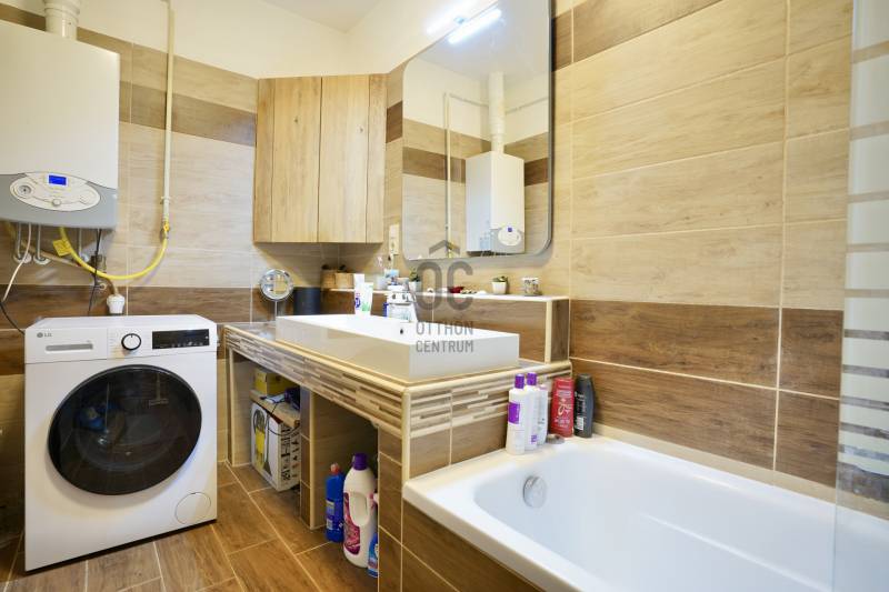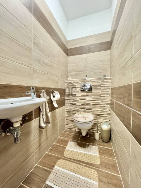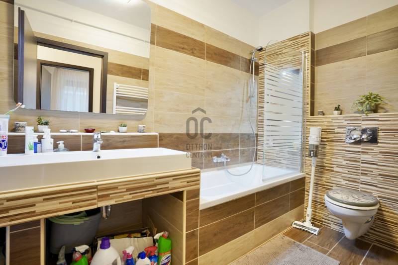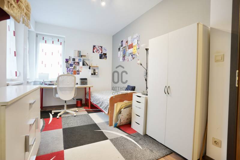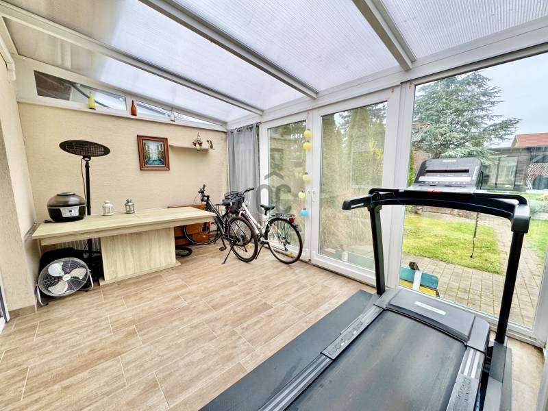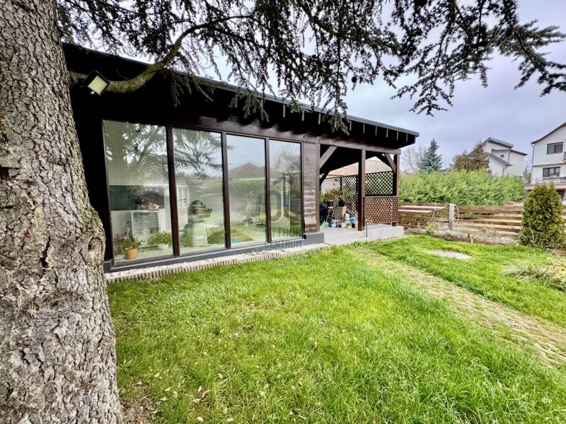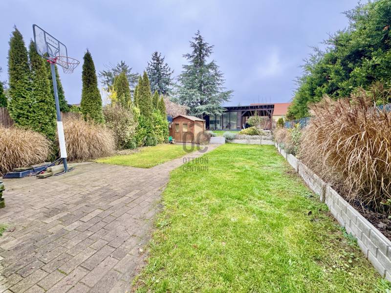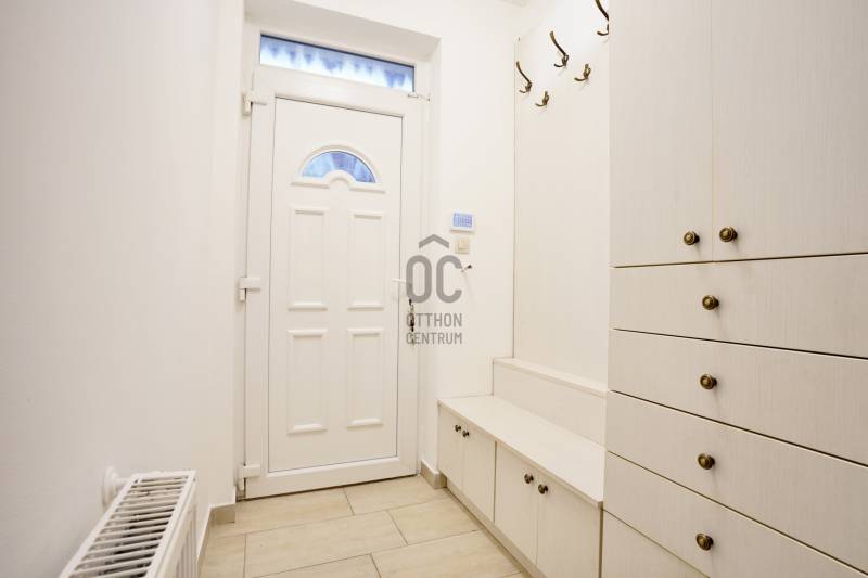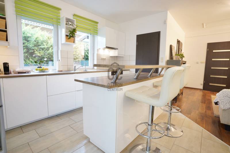 Eladó sorba került egy 110 m²-es ikerházfél Dunakeszi Alsó egyik csendes utcájában, 6 perc sétára a vasútállomástól és buszmegállótól.A Szabadságliget egyik legkedveltebb, csendes, átmenő forgalomtól mentes utcájában helyezkedik el ez a modern, 90 m²-es téglaépítésű ikerházfél, amelyhez egy 13,5 m²-es fűthető télikert, valamint a kertben egy különálló, összkomfortos, 20 m²-es könnyűszerkezetes apartmanház is tartozik.A FŐÉPŰET:A ház 2015-ben épült, 10 cm-es külső hőszigeteléssel, cseréptetővel, műanyag nyílászárókkal, minőségi burkolatokkal, mozgás- és nyitásérzékelő riasztórendszerrel. A melegvízről és a fűtésről Ariston kombi cirkó kazán, a hűtésről és rásegítő fűtésről Gree hűtő-fűtő klíma gondoskodik. A radiátoros és padlófűtés kombinációja kellemes, energiatakarékos hőérzetet biztosít, minden helyiségben redőny van, az ablakokon pedig szúnyogháló. A MELLÉKÉPÜLET:A kert hátsó részén található egy könnyűszerkezetes, hőszigetelt és teljesen önálló 20 nm-es vendégház, amely:- saját szobával,- külön konyhával,- zuhanyzós, beépített WC-vel felszerelt fürdővel,- valamint elektromos padlófűtéssel és klíma előkészítéssel rendelkezik.A melegvizet itt is Ariston, víztartályos villanybojler biztosítja, így az épület teljesen független a főépület rendszereitől. A vendégházhoz tartozik egy 17 m²-es fedett terasz, valamint egy füvesített, sziklakertes pihenő- és sütögető rész is.RENDEZETT, GONDOZOTT KERT:- automata öntözőrendszer- kerti csap- térkövezett, napelemes megvilágított közlekedőfelületek- 3 autó számára fedett beálló közvetlenül a ház mellett- szépen karbantartott gyep, dísznövényekkel beültetett magaságyás, sziklakert és 10-15 éves, magas tujákKIVÁLÓ KÖZLEKEDÉS:- vonattal 18 perc alatt elérhető a Nyugati pályaudvar,- busszal 3 perc Újpest–Káposztásmegyer,- autóval néhány perc alatt elérhető az M2-es, M3-as és az M0-s autópálya.Iá.: 169,5 M Ft.