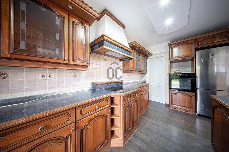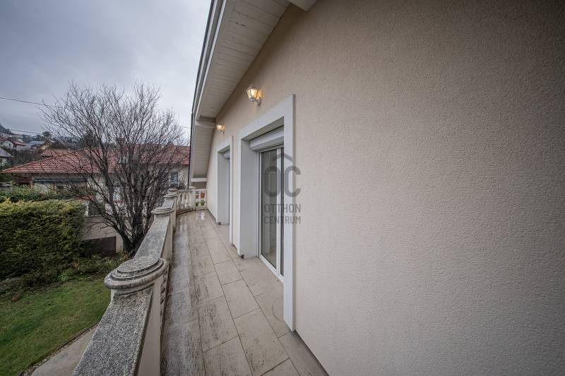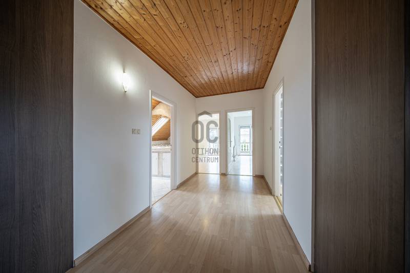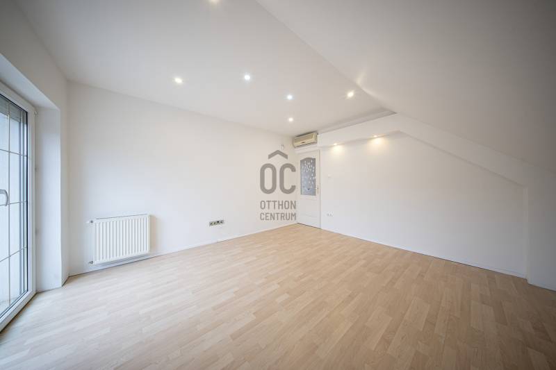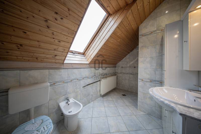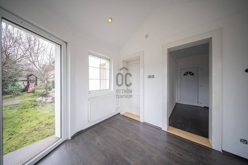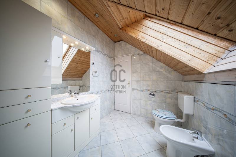 Eladó Budaörs egyik csendes mellékutcájában egy 280 m2-es, alacsony fenntartási költségű, élhető méretű kerttel rendelkező családi ház. Összesen hét szoba (5 teljes és 2 fél) és egy bő 670 m2-es, jó elosztású, ápolt kert biztosítja a többgyermekes családok kényelmét és magas életminőségét. Kér garázs és a kerti beálló akár három személygépkocsit és több motorkerékpárt is elnyel - a garázsokból közvetlenül bejuthatunk a házba anélkül, hogy esőben, fagyban kellene futkároznunk.A ház klimatizált, szinte az összes szobában saját klímakészülék gondoskodik a hűtésről/fűtésről. Egy gázkazán és egy kandalló biztosítja télen a meleget - az éves gázfogyasztás 100 000 forint körül alakul, így ez a lakóház bőven belefér a rezsicsökkentésbe is! A villanyszámla a telepített napelemeknek hála szinte minden hónapban nulla forint, ami a mai gazdasági helyzetben nem egy elenyésző részlet.A kétszintes ház a következő helyiségeket kínálja:Földszint:Előtér, nappali, konyha/étkező, kamra, fürdőszoba-WC, közlekedő, gépészet, vendégszoba/dolgozó, télikert és a garázsokA masszív, tömörfából felépített, kellemesen széles lépcső vezet az emeletre, aholtágas galéria/közlekedő, óriási (22,45 m2-es) szülői háló saját fürdőszoba/WC-vel, gardróbbal, szauna (nem megépített), kis dolgozószoba (4,82 m2), nagy fürdőszoba sarokkáddal, és két nagy gyerekszoba található. A két gyerekszobából közös erkély nyílik, ahonnan a kertre van kilátás.Pár műszaki részlet:- Külső falak 38 cm-es falazóelemekből- Belső teherhordó falak 25-ös falazóelemekből- Válaszfalak 10 cm-es téglából- Hörmann szekcionált garázskapuk- Viacolor „Classico” térkövezés- 11 cm-es szigetelés- Bramac alpesi plusz tetőhéjazat- Esővízgyűjtő rendszer, ami a kert locsolását biztosítja vízköltség nélkül- Fatüzelésű kandalló a nappaliban- Kiépített multimédiarendszer a nappaliban- Padlófűtés kiegészítő radiátorokkal- Tágas konyha prémium bútorzattal, beépített gépekkel- 4 kW teljesítményű napelemrendszer- RiasztrórendszerAz ingatlan jó állapotú, minimális ráköltést igényel. További információkért, kérem, hívjon!