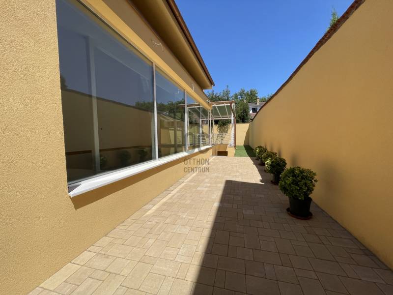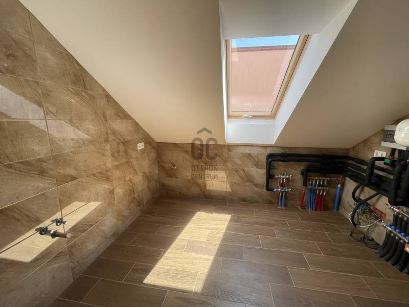 Debrecen frekventált övezetében, Nagyerdei környezetben várja új tulajdonosát ez a 2024-es, új építésű, nettó 187 m2-es, hatalmas, nagy belmagassággal rendelkező nappali+ 2 hálószobás magas műszaki tartalommal megépített, energia takarékos lakóingatlan, mely használatbavételi engedéllyel rendelkezik.Az ingatlan zártsorú beépítéssel, 349 m2-es telken épült, A + energia besorolású, földszint + emelet kivitelű.Minimális fenntartási költsége többek között a H tarifára csatlakoztatott Daikin hőszivattyúnak köszönhető, mely biztosítja az ingatlan hűtését és fűtését, padló, fal, mennyezet megoldással, továbbá szigetelt falainak és felső kategóriás külső nyílászáróinak, mely háromrétegű edzett üvegezéssel, rovarhálóval, részben távirányítható rolóval ellátott. Az ingatlan 10 kW-os napelem rendszer fogadására előkészített.Földszint helyiségei: nagyméretű nappali- étkező- konyha+ kamra, melynél a nappali igény szerint galériázható a nagy belmagasságnak köszönhetően, a nappaliból megközelíthető a polikarbonáttal fedett terasz, továbbá épített zuhanyzós fürdőszoba mellékhelyiséggel, MOFÉM csaptelepekkel.Emelet helyiségei: 2 hálószoba+ 1 gardrób, sarokkádas fürdőszoba WC- vel, gépészetnek kialakított helyiség mosókonyhával.Az ingatlanhoz tartozik egy 20 m2- es gépkocsibeálló HÖRMANN távirányítható szekcionált kapuval ellátva, elektromos autó töltésére alkalmas előkészítéssel, az udvaron több autó számára parkolási lehetőséggel, valamint az udvarról megközelíthető, pince szinten lévő tároló is.Azonnal birtokba vehető!További kérdéssel kapcsolatban keressen bizalommal!
