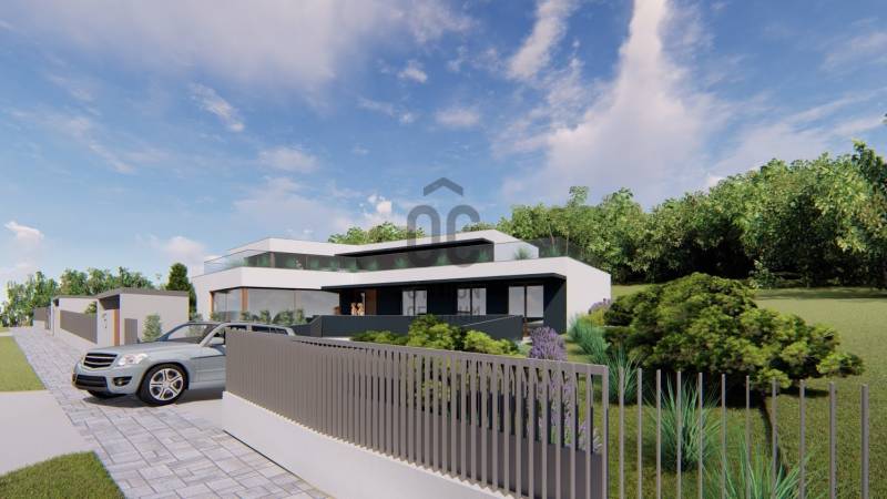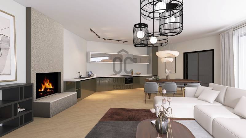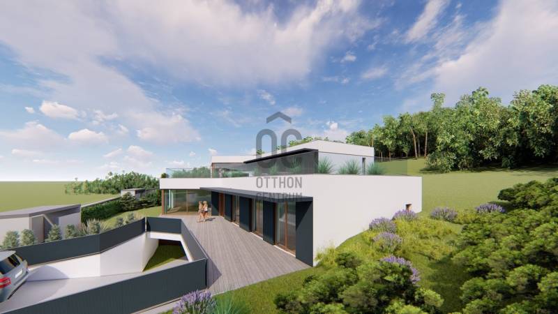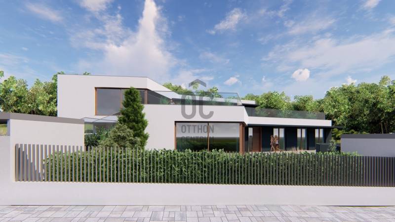 Érd-Parkváros csendes utcájában új építésű, nettó 187 m2-es, amerikai konyhás nappalival, 3 hálószobával, 2 fürdőszobával, kiszolgáló helyiségekkel, garázzsal, nagy terasszal ikerház eladó!Az épület formavilága rendkívül impozáns. Egyedi módon, szinteltolással kapcsolódik egymáshoz a két ház. Az ingatlant átgondolt, praktikus alaprajz, magas minőségű kivitelezés, modern, minden igényt kielégítő felszereltség jellemzi. Elhelyezkedése rendkívül csendes, zöld. Egy zsák utca végén, természetvédelmi terület szélén van, ami intimmé teszi. A hatalmas nyílászáróknak köszönhetően a ház világos, napos, szép kilátás van a környező erdős hegyekre. Az 57 m2-es terasz és a hozzákapcsolódó saját kertrész tökéletes helyet biztosít a kellemes pihenésre, kikapcsolódásra.A 2 épületnek csak a garázs szinten van közös fala. A házak 30 cm vastag Porotherm falazóelemekből épültek, 20 cm Dryvit rendszerű hőszigeteléssel.A fűtést Daikin hőszivattyús rendszer biztosítja, mennyezeti hűtés-fűtéssel és padlófűtéssel.A nyílászárók antracit színűek, fa, 3 rétegű, bukó-nyíló ablakok és nagy méretű toló teraszajtó, rejtett tokozással, elektromos redőnnyel, illetve zsalúziával. A burkolatok, szaniterek és belső ajtók kiemelkedő minőségben, az átlagnál magasabb áron választhatók. Az egyéb extra felszereltséget is tartalmazó részletes műszaki tartalmat komoly érdeklődés esetén rendelkezésére bocsájtjuk.A beruházó cég megbízható, és számos referencia munkával rendelkezik.Az utca rendezett, új építésű házakkal. Pár perc alatt elérhető minden szolgáltatás, iskola, óvoda, tömegközlekedés, bevásárlási lehetőség.Várható átadás: 2026. II. negyedévTovábbi információkkal kapcsolatban kérem hívjon bizalommal!
