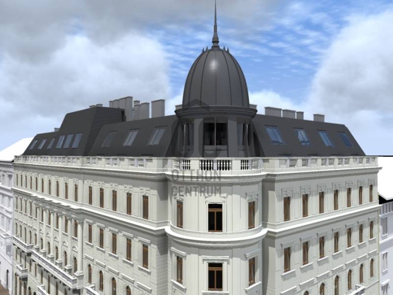 Exkluzív környezetben, műszakilag és esztétikailag a jelen elvárásainak megfelelően megtervezett és kivitelezett 119,405 m2 alapterületű, ötszobás lakás, 15,33 m2 terasszal eladó.A lakás Petschacher Gusztáv tervei alapján készült épület 5.emeletén helyezkedik el, háromszintes, ablakai a csendes belső udvarra és utcára néznek.Kedvező beosztású, az előtérből és a közlekedőből nyílik a három szoba. Az alsó szinten kerül kialakításra a fürdő és egy külön WC, zuhanyzó mely a hálószobából nyílik közvetlenül. A tágas, világos nappali és a konyha a második szinten kerül kialakításra. A lakás legtetején a harmadik szinten található a nagy tetőterasz, melyen jacuzzi alakítható ki.A lakás hűtéséről és fűtéséről oldalfali fan-coil rendszer gondoskodik. Riasztórendszer kiépítésre kerül. A hidegburkolatok (konyha, fürdőszoba, közlekedők) alatt padlófűtés kerül elhelyezésre. A lakások hűtését és fűtését H tarifás hőszivattyús rendszer biztosítja, így a lakások energiaellátásának költsége nagyon kedvező.A lakásokba a műszaki tartalomban szereplő konyhabútorok és gépek kerülnek beépítésre.A burkolatok és a konyhabútor színe tetszés szerint választható, a kijelölt opciók közül. Megfelelő időben történt megrendelői módosításokra lehetőség van.Projekt bemutatásaA lakások az UNESCO világörökség részét képező műemlék védettség alatt álló épület tejesen új építésű tetőterében helyezkednek el.A lakások legkésőbb 2023 szeptemberétől beköltözhetőek.A lakások mind saját lakásnak, mind értékálló befektetésnek is kiválóak. A már kivitelezés alatt álló 15 lakásos projekt keretében eladásra kínált változatos méretű egyszintes, belső kétszintes, illetve háromszintes luxus lakások nagyméretű tetőterasszal, télikerttel a legmagasabb igényeket kielégítő kivitelben készülnek.ELHELYEZKEDÉS:A lakások elhelyezkedése minden szempontból kedvező, kiváló közlekedési kapcsolatokkal. Közel a Pesti Broadway, pár perc sétára van a Zeneakadémia, az Operaház, az Operettszínház, a világörökség részét képező Andrássy út, a Liszt Ferenc tér, továbbá a Király utca, a Gozsdu udvar, amely a Budapest belvárosának egyik legdinamikusabban fejlődő központja, egy találkozási pont, ami összeköti a szórakozást, a gasztronómiát és a kultúrát. A szórakozó negyed a hét minden napján egyedülállóan izgalmas programokkal várja vendégeit.INGATLANOK:Exkluzív környezetben, műszakilag és esztétikailag a jelen elvárásainak megfelelően megtervezett és kivételezett 64-154 nm alapterületű, teraszos lakások eladók.Az új lakások a luxus minden elemével rendelkeznek, modern otthont teremtve a lakóknak, míg a világörökség részét képező, 1895-96-ban Petschacher Gusztáv tervei alapján épült eklektikus épület őrzi a régi hangulatot, amely az építés során felújított homlokzattal hangsúlyossá válik. Tradicionális környezetben teremt - a luxus minden elemével rendelkező - modern otthonokat.ÜTEMEZÉS:Az építkezés a januárban meghatározott ütemnek megfelelően, késedelem nélkül halad:- a tetőszerkezetet tartó acél keretállások elkészültek, továbbá a műemléki bádog tető fa fogadó részének a felrakása befejeződött, melyet követően az épület teljes lefedése megtörtént.- az udvarra kerülő 8 személyes új Kone lift tartószerkezete kész és 2023 márciusára a lift üzembe helyezése is megtörténik.- a homlokzat felújítás elindult.- a lakások falainak építése, az elektromos és gépészeti munkák is elindultak és megfelelő ütemben folynak.MŰSZAKI TARTALOM:PADLÓBURKOLAT- Beltér -A belső lépcső, kerámia burkolat készül, a megajánlott alap burkolattal. Opcionálisan lehet választani faburkolatot mely megegyezik a svédpadló anyagával. A belső vizes helyiségben, a belső lépcsőkön és a konyhákban, valamint a nappali terében elhelyezkedő konyhai területeken matt kerámia készül.A fürdőszoba egyik falára választható opciós burkolat. A nappali terekben és a hálószobákban svédpadló kerül lefektetésre.- Kültér - A teraszok, és a függőfolyosók csúszásmentes fagyálló kerámia ill. greslap burkolatúak, teljes felületű, üregmentes, flexibilis és fagyálló ragasztással.FALBURKOLAT- BeltérA vizes helyiségben ragasztott kerámia vagy greslap falburkolat készül álmennyezet alsó síkjáig.A pozitív éleket sarokprofillal lesznek kialakítva. A konyhákban a falon csak a konyhabútor és a felső szekrény között készül fali kerámia burkolat.Belső festések min.2 rtg. diszperziós fehér falfesték falakon, mennyezeten- Kültér -A teraszoknál külső Trespa falemezes burkolat kerül a határoló falakra, tölgy színben.NYÍLÁSZÁRÓK- Beltér -Három oldalon falcolt, vázszerkezetű Mantu Echt ajtók kerülnek furnérozott ajtólapokkal, eloxált alumínium kilinccsel és körrozettával.- Kültér - A lakásokhoz tartozó külső nyílászárók rendszere: Gealan S9000 ötkamrás, 3 rétegű, kiváló hang és hőszigetelést biztosító rendszer, kívül barna, belül fehér színű, távirányítóval működő külső redőnnyel. A tetőteraszok tolóajtó szerkezetűek.A tetősíkba beépített ablakok Fakro típusúak, elektromos mozgatású redőnnyel, belül fehér, kívül szürke. Ahol szükséges, betörésbiztos balesetvédelmi biztonsági fóliával ellátott üvegezéssel készül.Az öt ponton záródó, acéltokos lakásbejárati ajtók a hatályos előírásoknak megfelelő biztonsági szinttel, a vonatkozó klímaosztálynak megfelelően készülnek, barna színben.KONYHABÚTORA konyhában beépített süllyesztett led munkafénnyel készül, az ajtók színével azonos színvilágú, 18 mm vastagságú bútorlap kerül beépítésre. A munkala