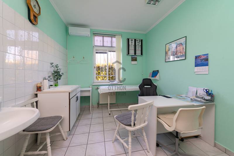 Budapest XVIII. kerületében, Szemeretelep csendes részén eladó egy 93,1 m²-es, utcafronti üzlethelyiség, amely jelenleg egészségügyi központként működik.Az ingatlan családi ház része, ügyvédi megosztással, külön közműórákkal rendelkezik.Parkolás a ház előtt biztosított.Helyiségek-3 külön rendelő / szoba-1 tágas váró / nappali-konyha-2 WC-fürdőszobaHasznosítási lehetőségek-orvosi rendelő, egészségügyi központ-iroda, szolgáltató egység-kis átalakítással akár lakófunkció is kialakíthatóFőbb jellemzők-minden helyiség klimatizált-világos, jól alakítható terek-gáz cirkó fűtés-karbantartott állapot-riasztórendszerNyugodt környezet, jó közlekedés, üzletek és szolgáltatások a közelben.Ideális befektetés vagy saját vállalkozás számára.