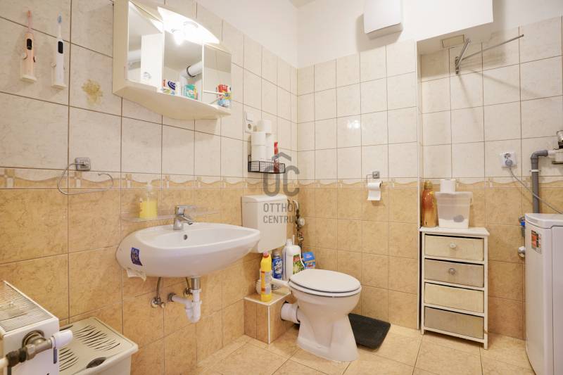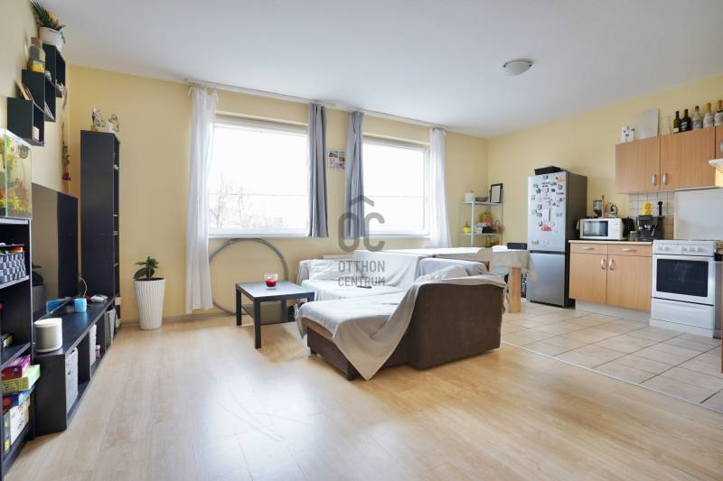 Budapest XVIII. kerületében, Újpéteritelepen, a Nemes utcában rendezett társasházban kínálunk megvételre egy 58 m²-es, 2 külön nyíló szobás, utcára és belső udvarra is néző, világos és jó elosztású első emeleti lakást.A ház 2003-ban épült, tégla szerkezetű, jó állapotú épület, mindössze 18 lakással. A társasház földszintjén üzletek találhatók – többek között pékség, virágbolt, dohánybolt és egy Otthon Centrum iroda is –, így minden fontos szolgáltatás karnyújtásnyira elérhető.A első emeleten található lakás tehermentes, hitelezhető.Az ingatlanban jelenleg megbízható bérlő lakik több éve , aki igény esetén szívesen maradna is, így kiváló lehetőség ez befektetés szempontjából. Amennyiben saját célra vásárolná meg az lakást a bérlő 60-90 napon belül tud kiköltözni. A házban több 2-3 szobás lakás is van még eladó.A lakás helyiségei:-nappali-étkező: 24,49 m²-konyha: 9,87 m²-külön nyíló hálószoba: 12,6 m² -előszoba: 5,27 m²-fürdőszoba-WC: 5,8 m²A fűtésről 2017-ben cserélt, kondenzációs gázcirkó gondoskodik, amelynek idei nagy karbantartása már megtörtént, valamint műanyag nyílászárók kerültek beépítésre.A villany- és gázórák feltöltőkártyás rendszerűek, a közös költség 19 140 Ft/hó. A lakáshoz zárható közös tároló is tartozik, a lépcsőház földszintjén.Parkolás az utcán ingyenes.A környék csendes, rendezett és biztonságos.A közlekedés kiváló: néhány perc sétával elérhető több buszjárat, amelyekkel gyorsan megközelíthető a Kőbánya-Kispest metróvégállomás és a belváros is. Autóval az Üllői út közelsége révén a reptér és az M0-ás is könnyen elérhető.Ha egy kiváló elhelyezkedésű, jól karbantartott, azonnal költözhető lakást keres a XVIII. kerületben, ez a lehetőség Önnek szól.Amennyiben bármilyen kérdés felmerült Önben vagy szeretné megtekinteni az ingatlant keressen bizalommal. Továbbá igény esetén a vásárlás teljes folyamata során magas szintű, szakmailag releváns hitelügyintézői támogatást biztosítunk, a finanszírozási lehetőségek áttekintésétől egészen a sikeres folyósításig.Ez az ingatlan a \"Felező csomag\" megbízási portfólióhoz tartozik. Részletek az Otthon Centrum weboldalán.