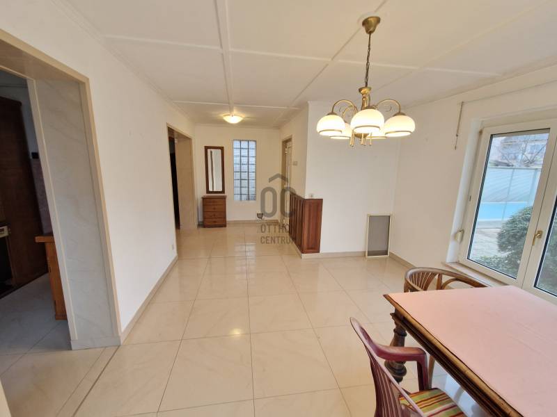 Megvételre kínálunk egy 5szobás részben felújított családi házat, ahol a hagyományos építés és a modern megoldások tökéletes összhangban találkoznak.Főbb Jellemzők:Masszív Szerkezet: Az eredeti házrész 50 cm vastag vértesszőlősi terméskő fala nyáron kellemesen hűs, télen pedig kiválóan tartja a meleget. Az újabb építésű rész B38-as téglából épült. Cserepes lemez tetővel és korszerű Kömmerling ablakokkal ellátva.Felújítás: A ház részleges felújítása 2016-ban megtörtént, melynek során a víz- és villanyhálózat cseréje az egész házban megtörtént, illetve az alsó szinten új hidegburkolatok kerültek és padlófűtés került kialakításra.Fűtés és Melegvíz: A fűtést és a meleg vizet is modern Vaillant gázkazán biztosítja, emellett a hangulatos melegről egy cserépkályha is gondoskodik. A melegvíz-ellátásban bojler is segíti.Kényelmi Extrák: A ház igazi gyöngyszeme a fűthető medence és a télikert, melyek egész évben garantálják a kikapcsolódást. Az emeleten 2 db LG légkondicionáló biztosítja a komfortot.Helyiségek Elosztása:Földszint: Tágas előszoba, étkező, konyha, nappali, hálószoba, WC és fürdőszoba.Emelet: 3 szoba, előszoba, valamint egy fürdő-WC. Az emelet kívülről és belülről is megközelíthető. A két lakrész megosztásának köszönhetően a rezsivédet Kert és Udvar: A telek rendezett, rajta 2 beállásos garázs (az udvaron) és egy tároló található. A kényelmes bejutást automata kovácsoltvas kapu biztosítja. Ezen felül egy kutyakenel is kialakításra került.Kerti vízellátás: A kert öntözésére és kerti csapra külön vízóra áll rendelkezésre, ezen kívül egy 30 méteres ásott kút is növeli az öntözés biztonságát.Ez az ingatlan ideális választás azok számára, akik tágas otthonra vágynak, illetve 2 generációs otthon szeretnének kialakítani.További információért várom hívását!