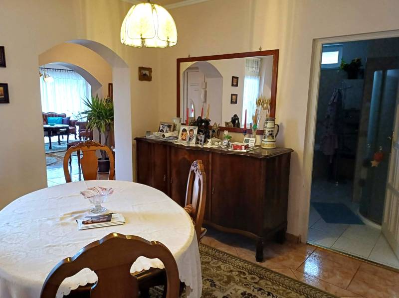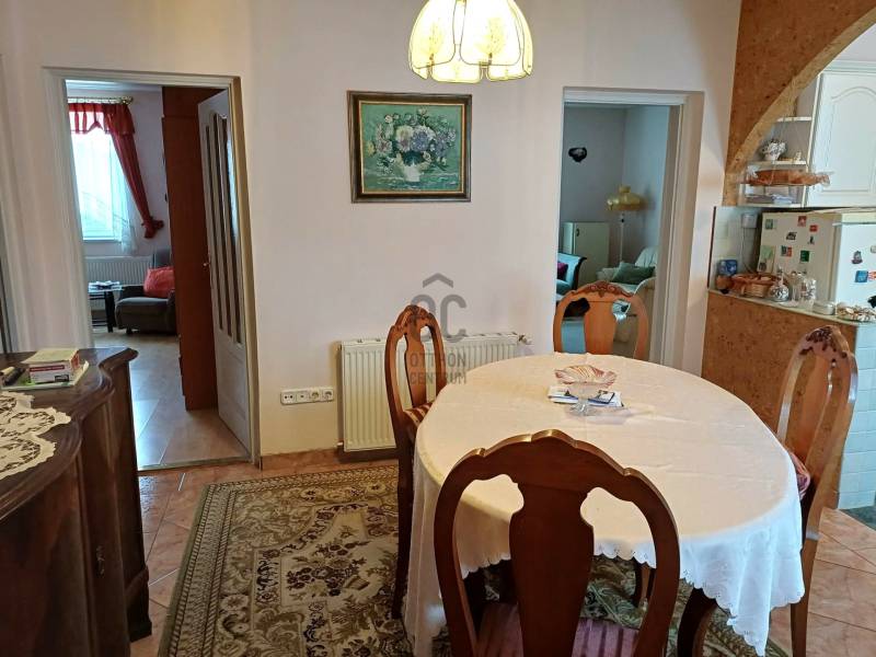 Debrecen kertvárosi övezetében, Falóger városrészben, a Csapókert határán, széles, nyugodt utcában található ez a jól átgondolt adottságokkal rendelkező családi ház. A nettó 107 m²-es, beton alapra épült, tégla falazatú, cserépfedéses ingatlan egy 674 m²-es telken helyezkedik el. Az eredetileg 1986-ban épült ház praktikus elrendezéssel készült, majd 2003-ban nappali résszel bővült, így a terek ma is élhetőek és jól alakíthatók.Főbb műszaki jellemzők:- 2 szoba + nappali- Étkező, konyha- Fürdőszoba, külön WC- Kamra- 5 cm külső szigetelés- Műanyag nyílászárók- Gázcirkó fűtés, radiátoros hőleadással- RiasztórendszerA ház egyik nagy előnye a tetőtér-beépítési lehetőség, amely kb. 40 m²-rel növelheti az életteret – ideális többgyermekes családnak vagy otthoni munkához. A 30 m²-es garázs mögött egy 10 m²-es tároló kapott helyet, melyek összenyithatók, így akár 40 m²-es garázs is kialakítható. Mivel a garázs a kert hátsó részében található, több autó beállása is megoldható, amit a 30 méter széles utcafront tovább erősít. A szép, gondozott kert tökéletes helyszín pihenéshez, családi programokhoz vagy akár kertészkedéshez.Ez az ingatlan ideális választás mindazoknak, akik nyugodt kertvárosi környezetben, mégis jó városi kapcsolatokkal szeretnének otthont teremteni – ráadásul tovább bővíthető formában.Ha szeretné személyesen is megnézni, vagy kérdése van az ingatlannal kapcsolatban, vegye fel velünk a kapcsolatot, és egyeztessünk időpontot.
