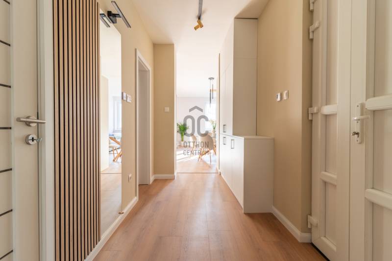 Eladásra kínálok az Országút városrészben található, egy háromszög alakú sarokteleken, amelyet a Margit körút, a Fényes Elek utca és a Keleti Károly utca határol,egy Modern Okosotthont!Az ingatlan, Teljes körűen felújított, 4. emeleti, liftes, 3 szobás, Nettó 71 m²-es, prémium kivitelezésű.A folyamatosan karbantartott polgári házban lévő ingatlanban új elektromos- és vízvezetékek, háromrétegű nyílászárók,elektromos padlófűtés és Okosotthon rendszer biztosítják a kényelmet. A belsőépítész által megálmodott dizájn, az egyedi gépesített konyha, valamint az igény szerint elérhető bútorzat modern, stílusos életteret kínál.Főbb jellemzők:• Teljes körű műszaki és esztétikai felújítás• Padlófűtés minden helyiségben• 3 rétegű, hő- és hangszigetelt nyílászárók• 1 db beépített Gree klíma• Okosotthon vezérlés: fűtés, világítás, redőnyök• Gépesített, egyedi tervezésű konyhabútor• Belsőépítész által megálmodott, alacsony energiaigényű lakás• Részben bútorozott, de kérésre teljes bútorzattal is elérhető (külön megállapodás kérdése)• Liftes ház, 4. emeleti lakás• A telken belül a ház egy zárt zöld udvarral rendelkezik.Közlekedés szempontjából rendkívül jól ellátott:-közvetlenül előtte található a Mechwart Liget villamosmegálló (4/6-os villamos), jár ide a 11-es busz, és két megállóra, kb. 5 percre van a Széna téri (piros) metró.