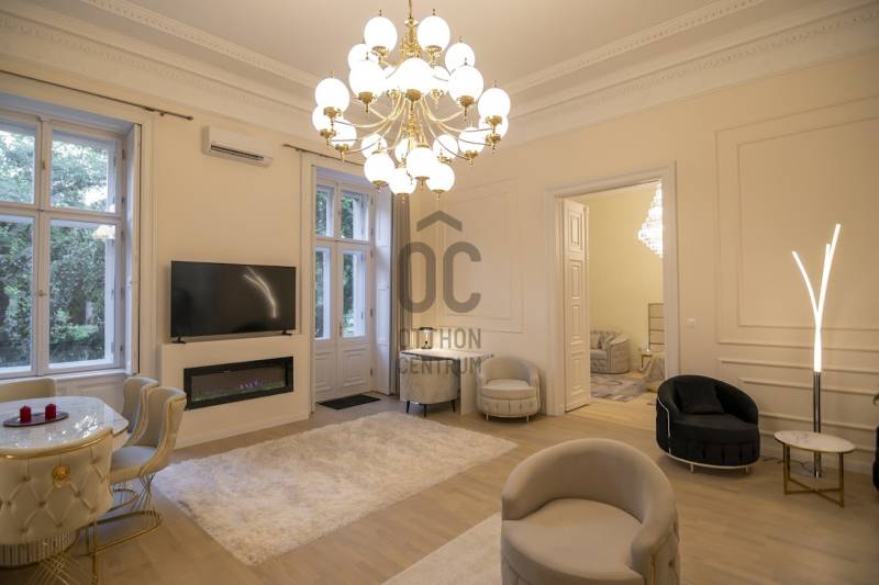 Kiadó luxus polgári lakás az Andrássy úton!Az Andrássy út eleganciáját és történelmi hangulatát ötvözi ez a valóságban 160 m²-es, 4 szobás, teljes körűen felújított, napfényben úszó polgári lakás, amely a klasszikus értékeket és a modern kényelmet egyaránt képviseli. Az 1. emeleten elhelyezkedő ingatlan tágas nappalival és 3 hálószobával rendelkezik, belmagassága eléri a 4 métert, amit a gyönyörű gipszstukkók és a spalettás polgári ablakok tesznek igazán impozánssá.A lakás utcai nézetének köszönhetően világos és napos, a hozzá tartozó TERASZ pedig különleges ritkaság a környéken. A belső terek teljesen berendezve, modern és stílusos bútorokkal várják új bérlőjüket, a konyha és a fürdőszoba minden szükséges géppel felszerelt. A lakás műszaki tartalma is a kényelmet szolgálja: gázcirkó fűtés és klímaberendezés gondoskodik az optimális hőmérsékletről.A társasház , lifttel rendelkezik, a belső udvarban pedig PARKOLÁSI LEHETŐSÉG biztosított.A lakás minden részlete új, így a bérlő egy elegáns, kifogástalan állapotú otthonba költözhet be azonnal.Az épület a főváros egyik ikonikus, reprezentatív palotája, amely a 19. század végén épült a sugárút fénykorában. A ház homlokzatát gazdag díszítés, elegáns arányok és impozáns ablakok jellemzik, belső terei a klasszikus polgári hangulatot idézik. Az Andrássy út központi elhelyezkedése miatt a ház közvetlen közelében megtalálhatók a város legnívósabb éttermei, kávézói, divatházai és kulturális intézményei, így az itt bérelhető lakás nem csupán otthon, hanem igazi életstílus is.Számos Éttermek és kávézók: Művész kávéház, Callas Café & Restaurant,Bombay Curry Bar,Hoppá! Bistro,Nem utolsó sorban az OPERA pár perc séta távolságban.A lokáció kiemelkedő: a belvárosi környezet egyszerre nyugodt és pezsgő, kiváló közlekedési lehetőségek: M1, Busz 105, 210, Deák Tér Reptéri Busz 100E, és villamosmegállók (4,6 pár perc sétára.Egyedi igényekre szabott lakáshitelekkel állunk rendelkezésére.Bankfüggetlen Hitelcentrumunk az országban elérhető összes bank és hitelintézet ajánlatát versenyezteti az Ön számára díjmentesen.Munkatársaink nagy szakmai tapasztalattal, teljes körű CSOK PLUSZ és OTTHON START PROGRAM ügyintézéssel várják Önt előre egyeztetett időpontban akár a normál munkaidő után is.Bővebb információért és a megtekintéssel kapcsolatban hívjon bizalommal!