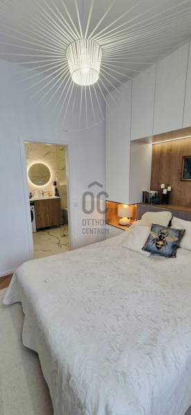 Képzeld el, ahogy a tágas, napfényben úszó nappaliból a Budai Vár panorámájában gyönyörködsz, miközben a naplemente aranyfénybe borítja a várost.Ez a frissen elkészült, 78 m²-es, nappali + 2 hálószobás, 2 fürdőszobás lakás a 4. emeleten igazi ékköve a környéknek – nyugati fekvésének köszönhetően minden napszakban világos és meleg hangulatú.A master bedroom saját zuhanyzós fürdőszobával és beépített szekrénnyel biztosít privát kényelmet, míg a másik hálószoba csendes, udvarra néző elhelyezkedésével tökéletes pihenőhely.A lakásban található külön fürdő és külön WC a praktikumot szolgálja.A modern, teljesen új konyha minden részletében megtervezett: elegáns beépített bútorok, letisztult design, és a hatalmas ablakok miatt itt is a fény uralja a teret.A társasház rendezett és igényes: felújított homlokzat, ÚJ LIFT, modern közös terek, így a ház megjelenése is méltó a lakáshoz.Ez a lakás nem csupán egy ingatlan – hanem egy életérzés.Belépni ide olyan, mintha már otthon lennél.Ne maradj le erről a ritka lehetőségről – hívj még ma, és nézd meg személyesen!Egyedi igényekre szabott lakáshitelekkel állunk rendelkezésére.Bankfüggetlen Hitelcentrumunk az országban elérhető összes bank és hitelintézet ajánlatát versenyezteti az Ön számára díjmentesen.Munkatársaink nagy szakmai tapasztalattal, teljes körű CSOK PLUSZ és OTTHON START PROGRAM ügyintézéssel várják Önt előre egyeztetett időpontban akár a normál munkaidő után is.