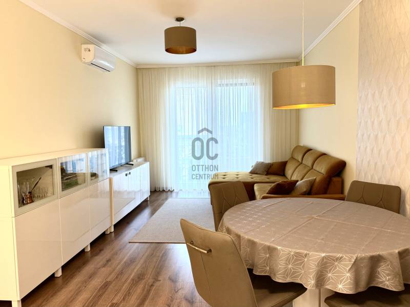 LAKÁS ÖSSZEFOGLALÓA Marina parton, a 2021-ben átadott Marina Life by Cordia 7.emeletén 82 m² alapterületű + 16 m² K-i fekvésű terasszal rendelkező 4 szobás, duplakomfortos (kádas és zuhanyzós fürdőszobával is rendelkezik), újszerű állapotú otthon eladó. A lakás a gondosan válogatott anyagok és a minőség jegyében készült el, kulcsrakész állapotban van: gépesített konyhabútorral, 4 db klímával, elektromos redőnnyel+ szúnyoghálóval és beépített bútorzattal kerül átadásra. A lakáshoz opcionálisan teremgarázs hely vásárolható, melynek ára +7 MFt.MARINA LIFE BY CORDIA (2021)A Cordia a közép - és kelet-európai régió egyik legnagyobb lakóingatlan-fejlesztő és befektető vállalatcsoportja. A társasház a 21. század technológiai megoldásaival felszerelt, okosotthon előkészítés rendelkezésre áll. A 2021-ben átadott Marina Life épületébe 4 lépcsőházból juthatunk be, lépcsőházanként 2 lift áll rendelkezésre. A belső udvarban gondozott látványkert szépíti az életteret, a lépcsőház takarítása mindennapos, továbbá távfelügyelettel ellátott kamerarendszer gondoskodik a lakók biztonságáról.XIII.MARINA PARTA Marina part nem csupán egy lakópark, egy külön világ a fővárosi lakáskeresők egyik legnépszerűbb kerületében, közel a belvároshoz. Budapest XIII. kerületének egyik legkedveltebb részén, a Duna-part mentén kínál exkluzív, zöldövezeti környezetet, amely ideális választás minden generáció számára – akár otthonteremtésről, akár hosszú távú befektetésről van szó. A Cserhalom utca – Meder utca közötti, kb. 750 méteres szakasza teljesen megújul: új burkolatot kap az út, járda, kerékpárút, és korszerűsítik a közvilágítást. Az útpálya 2×1 sávos lesz szolgálati sávval és parkolóhelyekkel, buszöblökkel; három új körforgalmat is létesítenek csomópontoknál, új gyalogos hidat építenek a Rákos-patak felett. Zöldfelületeket is fejlesztenek: több mint 200 fa telepítése, park, kutyafuttató, sétány építése, továbbá új locsolórendszer kialakítása is része a beruházásnak.Várom hívását, keressen bizalommal!Huga PéterOtthon Centrum - Marina part