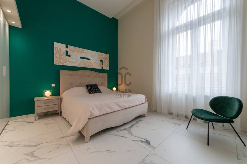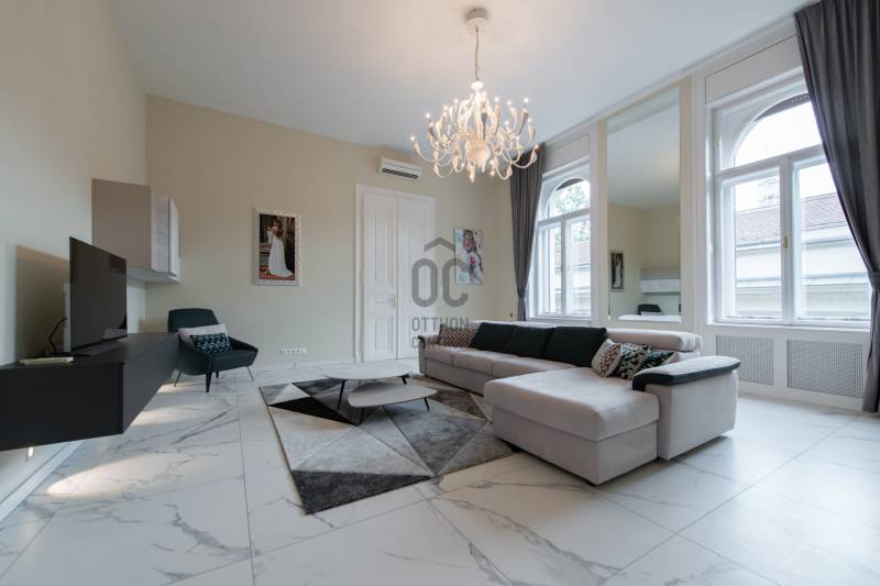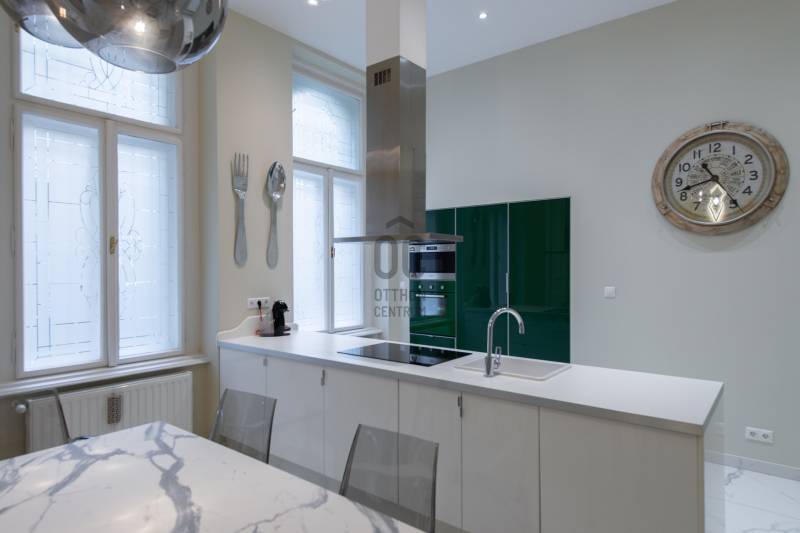 Egy 160 m2-es, 4 szobás, 3 fürdőszobás, 2. emeleti, elegáns, felújított nagypolgári lakást kínálunk bérlésre, amely belső tereiben is visszaadja az V. kerület és Egyetem tér és a teljes belváros elegáns, történelmi hangulatát.A társasház bejárata közvetlenül az Egyetem térről nyílik, amely Budapest egyik legszebb és leghangulatosabb tere. Közvetlen szomszédságában található a Károlyi kert is, Budapest egyik megőrzött, zárt, fás városi kertje.A lakás a Papnövelde utcában található és a Károlyi utcára néz, amely sétálóutca, kilátással a Petőfi Irodalmi Múzeum épületének tetejére.Főbb jellemzők:-160m2-Tágas nappali (40m2)-Tágas konyha étkezővel-3 hálószoba, külön fürdő-wc-vel mindegyik-Dolgozószoba-Belmagasság: 4.5 m-Liftes társasház-kisállat személyes egyeztetés után nem kizáró ok-azonnal költözhető-költözhető: 2 havi kaucióval és első havi bérleti díjjal-közjegyzői kiköltözési nyilatkozat szükséges Felszereltség:-A lakás teljesen bútorozott és gépesített, illetve -riasztóval is felszerelt. -A konyhai gépek, a mosó-szárító gép, a kazán stb. mind a legmagasabb minőségűek.-A lakás pár éve teljes körűen fel lett újítva és extra tulajdonsága, hogy a bútorok és a felhasznált anyagok nagy része Olaszországból lett hozatva.Környék és megközelítésElhelyezkedés és közlekedés szempontjából kiváló, mivel 4-5 perc sétán belül található a 2-es 3-as és 4-es metró is (Astoria, Kálvin tér, Ferenciek tere). Ezen kívüll a legjelentősebb buszvonalak (8E, 133E, 7, 7E, 112, 110...) továbbá a 2-es, a 47-es, és 49-es villamos, illetve a 15-ös és a REPTÉRI BUSZ is. A környéken megtalálhatóak nagy boltok (Aldi és Lidl is), éttermek, kávézók, orvosi rendelők.Bérleti díj: 950.000 ft/hó + rezsi, (2400 Euro/hó + rezsi)Bővebb információért és a megtekintéssel kapcsolatban hívjon bizalommal!