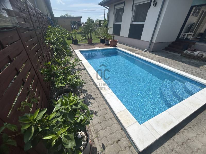 Győrzámolyi 2007-ben épült családi ház várja új tulajdonosát! -135 nm-es, 38-as Porotherm téglából épült, hőszigetelt vakolattal- 537 nm-es telek- nappali plusz 4 szobás- inverteres klíma nappaliban- tusoló és kád, illetve 2 db wc is kényelmessé teszi- 2 db fedett autóbeálló- épített medence (5,4 x 3,2 m, homokszűrő rendszerrel)- rendezett kert- 2 db fedett terasz- Bramac cseréptető, fafödémmel, 20 cm szigeteléssel- műanyag nyílászárók, redőnnyel és szúnyoghálóval- 3x25 A- locsolóóra- aszfaltozott, rendezett utca, jó lakóközösséggel- iskola, óvoda, bölcsőde, bolt, pékség, buszmegálló pár perc sétára található- nappali délnyugati tájolású, így körbe napozottGyőrzámoly Győrtől mindössze 9 km-re található Szigetközben. Ajánlom mindazoknak akik nem szeretnének Győrtől messzire költözni, ugyanakkor egy kertvárosias hangulatot keresnek!Hitelre van szüksége? Tudunk segíteni!Az Otthon Centrum az ország egyik legnagyobb és legmegbízhatóbb hitelközvetítőjeként, teljes körű és díjmentes hitelügyintézéssel, biztosításkötéssel áll rendelkezésére!Kérje személyre szabott ajánlatunkat Kollégáinktól!