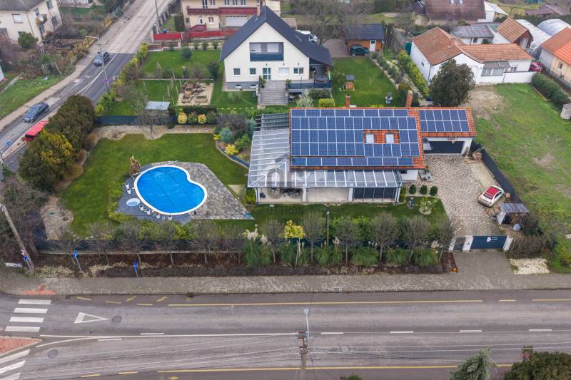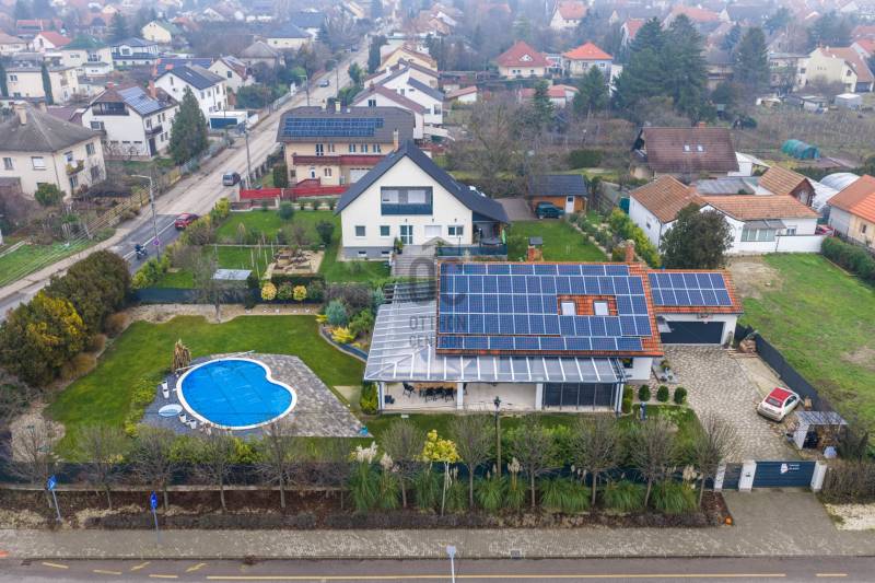 Eladásra kínálunk Székesfehérváron, Öreghegy könnyen megközelíthető részén, egy 260nm-es (bruttó 312nm) két szintes, nappali + öt szobás, három fürdőszobás, dupla garázzsal (36nm) rendelkező, exkluzív családi házat.A ház 1311nm telekre épült, egy 50nm-es boros pince is található a ház alatt.Az ingatlan 2005-ben épült, 2020-ban teljeskörű felújításon esett át, mind műszaki, mind esztétikai szempontból.A korszerű napelemes technikával felszerelt ház (66db 20 kW-os napelem), a magasabb hatékonyságra fókuszál.A fűtésről padlófűtés, a melegvíz ellátásról, három Ariston intelligens bojler gondoskodik.Az ingatlan paraméterei:- 3 x 63 A + ipari áram- kamerarendszer- BWT intelligens vízlágyító készülék- öntözőrendszer, tíz körös, programozható, 480 méter csepegtető rendszerrel- fúrt kút- kerti tároló- 6 x 10 méteres medence, sóbontásos, automata porszívóval felszerelt, fóliával fedett- elektromos garázskapu, bejárati kapu- grandiózus terasz- három rétegű alumínium nyílászárókElhelyezkedése családi házas övezet, főúthoz, autópályához, bevásárlási lehetőséghez közel.A Spar és Lidl egy ugrásra, posta, orvosi rendelő 8 -10 perc sétával elérhető.Tömegközlekedéssel is könnyedén elérhető a ház, a 23,24,25,31,-es buszokkal. Egyedi lehetőség, hívjon bizalommal, amennyiben hirdetésünk elnyerte tetszését, várom megtisztelő érdeklődését!Az Otthon Centrumnál bankfüggetlen tanácsadó kollégánk, díjmentes bank semleges hitelügyintézéssel áll rendelkezésére, segítségére lesz az önnek legmegfelelőbb konstrukció kiválasztásában.