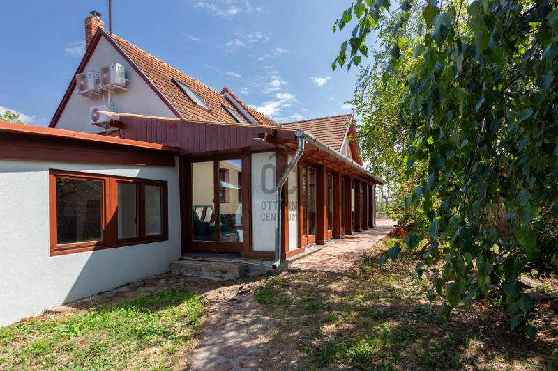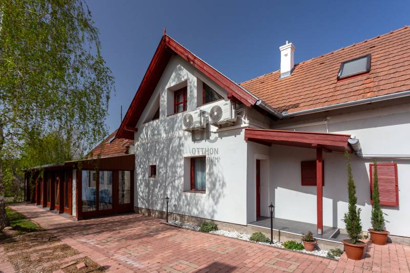 A Balaton északi partján, a Káli-medence egyik legbájosabb településén kínálunk megvételre egy teljes körűen felújított, két szinten elhelyezkedő, szálláshely üzemeltetésére kiválóan alkalmas ingatlant.Az ingatlan lakóház besorolású, de kialakítása és felszereltsége révén már jelenleg is vendégházként üzemel, így az új tulajdonos akár azonnal folytathatja a működtetését.Telek terület: 1460 m²Alapterület: 221 m²Szobák száma: 7Fürdőszobák száma: 5JELLEMZŐK ÉS ELRENDEZÉS – vendégfogadásra optimalizálvaFöldszint: Első lakóegység: gépesített, tágas konyha-étkező, hálószoba, fürdőszoba, külön mosókonyha/tároló Fedett télikert: világos közösségi tér nagy üvegfelületekkel – ideális reggeliztetéshez vagy vendégrendezvényekhez További helyiségek: közös használatú konyha, szoba, fürdőszoba, gépészeti helyiség, közlekedőEmelet: 3 külön bejáratú vendégszoba, mindegyik saját fürdőszobával és WC-vel Tágas közlekedő/közösségi térModern felszereltség, alacsony üzemeltetési költség Elektromos padlófűtés + hőtárolós melegvíz rendszer Hűtő-fűtő klíma Kályha az első lakóegységben Napelemrendszer 3×32 A áramerősség 12 cm külső hőszigetelés Hőszigetelt fa nyílászárók Cserépfedésű, szigetelt tetőVendégcsalogató külső környezet: Elektromos kapu, térkövezett előudvar Gondozott, parkosított hátsó kert: kerti tó, gyümölcsfák, füves pihenőrész Szauna és kültéri dézsafürdő a vendégek kényelméért Minőségi bútorok, napernyők, nyugágyak, hinta és kerti garnitúrák az udvaronKiváló befektetés – Azonnal működtethető turisztikai egységEz az ingatlan nem csupán egy lehetséges otthon – egy kész vendéglátóhely, ahol az új tulajdonos egy jövedelmező családi vállalkozást vihet tovább. A Balaton és a Káli-medence folyamatos turisztikai vonzereje garantálja a szezonon túli kihasználtságot is.Vegye fel velünk a kapcsolatot még ma – ragadja meg ezt az egyedülálló lehetőséget!Ideális választás magánszemélyeknek, befektetőknek, de akár cégek számára is üdülőként vagy prémium vendégházként.