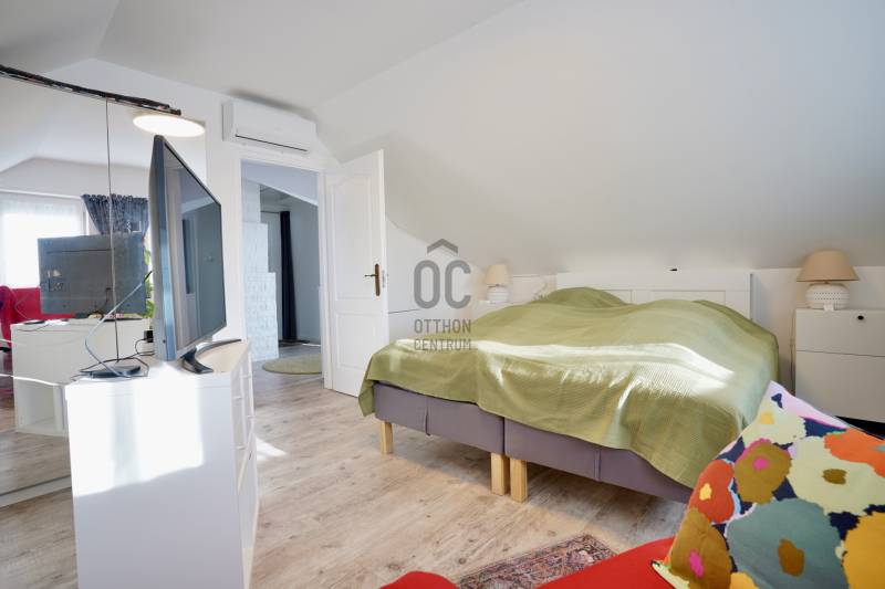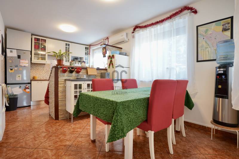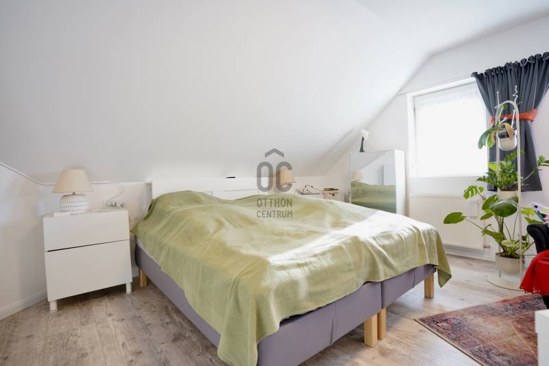 Családbarát, felújított otthon Vácon – nyugalom, tér és modern komfort egy helyen, A+++-os energetikai besorolással!Vác csendes, kertvárosi környezetében eladó egy világos, tágas, igényesen felújított családi ház, amely ideális választás gyermekes családok számára, mindössze 20 percre Budapesttől. Az amerikai konyhás nappalival és négy különálló hálószobával kialakított ingatlan kiváló térszervezésének köszönhetően hosszú távon is kényelmes otthont biztosít, akár több generáció együttélésére is.A 2005-ben épült, masszív Porotherm téglaház 2022 óta folyamatos korszerűsítésen esett át. A 255 cm-es belmagasság és a jó tájolás világos, barátságos belső tereket eredményez. A mindennapi komfortot tovább növeli, hogy minden hálószoba, valamint a nappali is klimatizált, így az év minden szakában kellemes hőmérséklet biztosított.Az energiatakarékos üzemeltetésről 10 kW-os, szaldós elszámolású napelemes rendszer, automata pelletkazán szobatermosztáttal, radiátoros központi fűtés, valamint a földszinten padlófűtés gondoskodik. A melegvízellátást 200 literes Hajdu indirekt tárolós bojler biztosítja, az elektromos hálózat korszerűsített. Az ásott kútról működő öntözőrendszer alacsony fenntartási költségek mellett teszi gondozhatóvá a kertet.A földszinten egy tágas nappali–étkező–amerikai konyha alkotja a családi élet központját, továbbá egy külön hálószoba saját fürdőszobával, amely ideális lehet nagyszülőnek, vendégnek vagy otthoni irodának. Előszoba, kamra és külön WC egészíti ki a szintet. Az emeleten három jól bútorozható hálószoba, fürdőszoba és közlekedő található, míg az alagsor tárolóként és kazánházként funkcionál.A sík, körbekerített kert biztonságos játszóteret kínál gyermekeknek, miközben gyümölcsfák, bogyós növények és szőlő teremtik meg a természetközeli életérzést. A fedett (13 m²) és a tágas, nyitott (35 m²) terasz ideális helyszín családi és baráti összejövetelekhez. Az udvaron 8 m²-es tároló, egy 3,5×7 méteres gépkocsibeálló, valamint további parkolási lehetőség áll rendelkezésre.Az M2-es autóút mindössze 2 percre található, így Budapest gyorsan elérhető, miközben a környék nyugodt, rendezett, kifejezetten családbarát. Iskola, óvoda, bevásárlási lehetőségek rövid időn belül elérhetők, így ez az ingatlan valóban ideális választás azoknak, akik hosszú távra keresnek biztonságos, szerethető otthont.A ház megvásárlásához a megfelelő önerővel „már rendelkező”, de ezenfelül akár ***banki hitelfelvétellel, akár *** CSOK+ , akár ***lakáskassza megtakarítással és akár a ***babaváró program keretében felvehető / felhasználható pénzösszegből vásárló személyek megkeresését is szeretettel várom!Ha a leírtak és a látottak alapján felkeltettem az érdeklődését, keressen bizalommal akár hétvégén is!***Az igénylési / felhasználási feltételekkel kapcsolatban, valamint ezek ügyintézésben is, az Otthon Centrum hitelközvetítő munkatársával együtt, készséggel állok az Ön szíves rendelkezésére!
