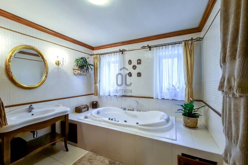Egyedi családi házat keres, prémium környezetben? Nézzen rá ajánlatunkra!Gyönyörű, EXKLUZÍV KÖRNYEZETben, a város talán legszebb részén, Sopron, Felső-Lőverek csendes utcájában, a belvárostól mindössze 1,5 km-re, eladó egy a századfordulón épült és 1999-ben és 2008-ban teljeskörűen felújított, 3 szintes, bruttó 352 nm-es, exkluzív VILLA.A most meghirdetett villa - magán az épület egyediségén kívül- azért is tekinthető unikálisnak, mert a városnak ezen a prémium részén nagyon ritkán kerülnek piacra ingatlanok.Egy kis történelem:Vannak épületek, amelyek megvásárlásával nemcsak egy ingatlan birtokába jutunk, hanem egy kicsit a történelemnek is részesei leszünk . Ez a gyönyörű szecessziós villa kívülről és belülről is hordozza és megmutatja nekünk a múlt századforduló eleganciáját és semmivel össze nem hasonlítható stílusát. Az épületet az a híres soproni építész - Schármár Károly- tervezte 1909-ben, akiről Sopronban utcát is neveztek el, és a nevéhez Sopronban nagyon sok ma is álló épület köthető. Ilyenek például:- a Széchenyi téri Posta palota - a Deák téri, mai Eötvös gimnázium - a lővereki Szent Margit kápolna, nevéhez fűződik a soproniak által csak Pum háznak nevezett Újteleki u 52. alatti szecessziós épület, valamint részt vett többek között a Villa sor építésében is.A VILLA először 1999-ben került teljes felújításra, a szintén neves soproni építész dinasztia egyik tagja - Kubinszky András- tervei alapján, majd 2008-ban már a mostani tulajdonosok által, egy neves belsőépítész munkájának köszönhetően nyerte el ma is látható formáját.Jellemzői:- Telek: 1664 nm- Mérete: bruttó 352 nm, 302 nm lakóterület (1 - 2 szint) + 20 nm pinceszint, + 30 nm garázs- 7 szoba- 40 nm déli tájolású terasz- 2 autóbeállós garázs - gáz cirkó fűtés, kombi gázkazán- klíma a felső szinten- infraszauna- riasztórendszer- külső medence- grill terasz (minőségi grillezővel, sörcsappal)Az egész házról első pillantásra lerí az időtálló minőség és igényesség.Ha további információra lenne szüksége, kérem keressen a lenti elérhetőségeken!Hitelre van szüksége??Az Otthon Centrum az ország egyik legnagyobb és legmegbízhatóbb hitelközvetítőjeként, teljes körű és díjmentes hitelügyintézéssel, biztosításkötéssel áll rendelkezésére!Kérje személyre szabott ajánlatunkat Kollégáinktól!