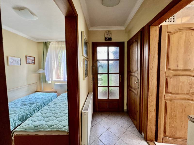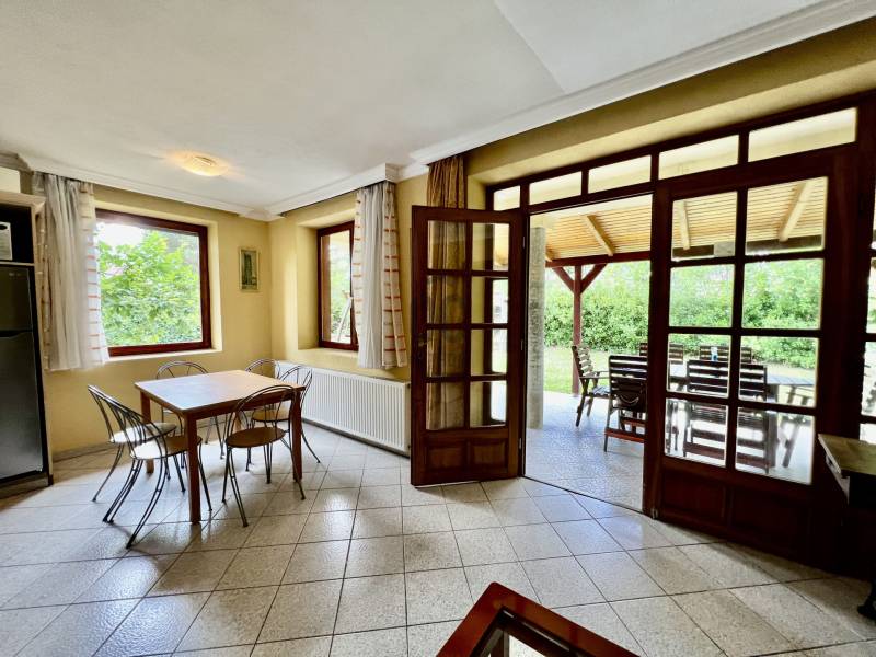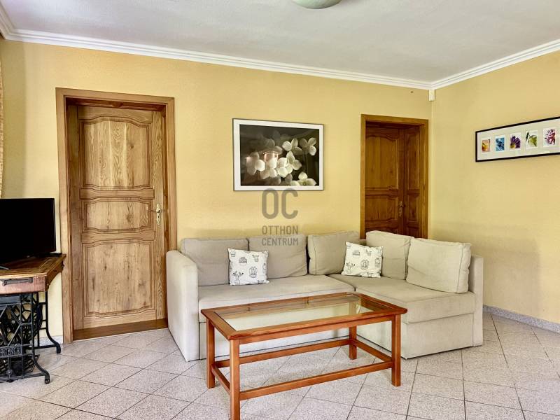 A Balatontól mindössze 1500 méterre, Balatonföldvár nyugodt, ritkán beépített részén kínálunk megvételre egy valóban különleges adottságú, gondosan karbantartott, medencés családi házat. Az ingatlan jelenleg is jól működő vendégházként üzemel, ugyanakkor tökéletes választás lehet családi nyaralónak vagy akár állandó otthonnak is.Az ingatlan főbb paraméterei:Telek: 469 m², 23 méter széles utcafronttal, igényesen kialakított, gondozott kerttelFöldszint: 74 m² lakótér + 28 m² fedett terasz3 hálószobafürdőszoba WC-velvilágos, napfényes amerikai konyhás nappaliTetőtér: 64 m² (ca. 80%-os készültségi szint)3 hálószobanappalifürdőszoba, külön WC, közlekedőTájolás: délnyugati – egész nap világos, napfényes terekMűszaki és kényelmi felszereltség:Kerti medence, sütögető és külön szerszámtárolóKétrétegű fa nyílászárók, szúnyoghálóval felszerelveFűtés gázcirkó kazánnalIvóvíz közműről, valamint saját, bevizsgált fúrt kút ivóvíz-minőségű vízzel – ideális locsoláshoz és a medence üzemeltetéséhezElektromos hálózat földkábelen bevezetveMiért jó döntés ez az ingatlan? A ház ideális választás mindazok számára, akik csendes, természetközeli környezetben szeretnének pihenni vagy élni, mégis elérhető távolságban maradnának a Balatontól. A már bejáratott vendégházi működésnek köszönhetően az ingatlan akár azonnali bevételt is biztosíthat új tulajdonosának.A tágas, fedett terasz kiváló helyszíne baráti és családi összejöveteleknek, a gondozott kert és a medence pedig valódi nyaralóhangulatot teremt a mindennapokban.Ne szalassza el a lehetőséget!Tekintse meg személyesen, és tapasztalja meg, milyen érzés hazatérni ebbe a barátságos, sokoldalúan hasznosítható balatoni otthonba.