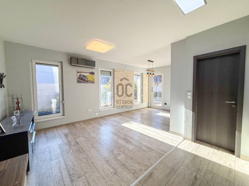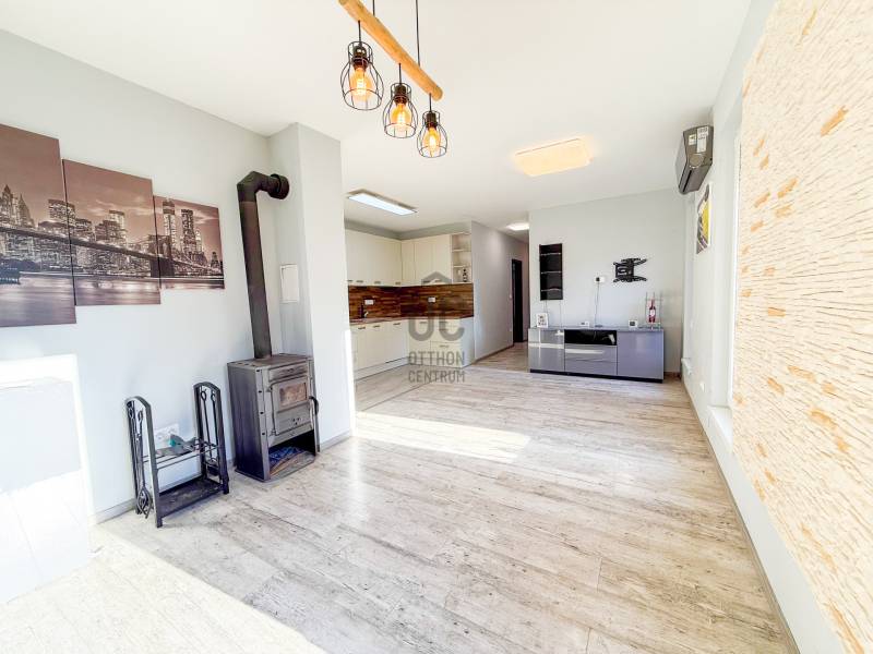 Most 8 M Ft-tal olcsóbban !!! 116 M helyett csak 107,9 M Ft2021-ben épült, korszerű, egyszintes könnyűszerkezetes családi ház Sopron-Balf csendes, zöldövezeti részén. Tágas nappali-étkezővel, három hálószobával, privát kerttel és külön garázzsal.Főbb jellemzők- Alapterület: 103 m2- Szintek: 1- Szobák: nappali + 3 hálószoba+ gardrób+háztartási helyiség+kamra- Telek: 1075 m²- Garázs: különálló garázs- Építés éve: 2021Elrendezés és belső tér- Világos, nyitott nappali-étkező-konyha, nagy ablakokkal és közvetlen kertkapcsolattal.- 3 külön nyíló hálószoba (master háló saját gardróbbal, furdő-Wc-vel ).- 2 fürdőszoba modern burkolatok és szaniterek.- Kényelmes közlekedők és tárolási lehetőségek.Műszaki jellemzők- Korszerű építési technológia, jó hőszigetelés.- Fűtés: elektromos kazán, padlófűtés + klíma + kandalló- Nyílászárók: hőszigetelt műanyag ablakok - Közművek: villany, víz, csatorna.- Kiváló energetikai besorolás: CC- Elektromos kertkapuKültér, kert és telek- 1075 m²-es telken mindennek jut megfelelő hely, akár medencének, játszótérnek vagy kerti kiülőnek.- A kertben található egy régi melléképület, amely kiválóan alkalmas lehet egy hangulatos nyári konyhának vagy műhelynek, tárolónak stb.- Terasz a nappalihoz kapcsolódva.- Garázs + további parkolási lehetőség a telken.Előnyök- Új építésű, korszerű otthon, modern könnyűszerkezetes technológia, alacsony fenntartási költségek .- Csendes, zöld környezet, mégis jó megközelíthetőség Sopron és környéke felé.- Sopron mindössze 5 perc távolságra- Nagy telek, bővíthető kertfunkciók, családi életre ideális.Környék és közlekedés- Fertő-part kedvelt települése Balf, népszerű célpontja a nyugalmat és falusi idillt keresőknek.- Sopron közelsége, helyi szolgáltatások, iskola, boltok rövid autóúttávolságra.- Jó közúti kapcsolat, nyugodt utcakép, kellemes lakókörnyezet.Hitelre van szüksége?Az Otthon Centrum az ország egyik legnagyobb és legmegbízhatóbb hitelközvetítőjeként, teljes körű és díjmentes hitelügyintézéssel, biztosításkötéssel áll rendelkezésére!Kérje személyre szabott ajánlatunkat Kollégáinktól!