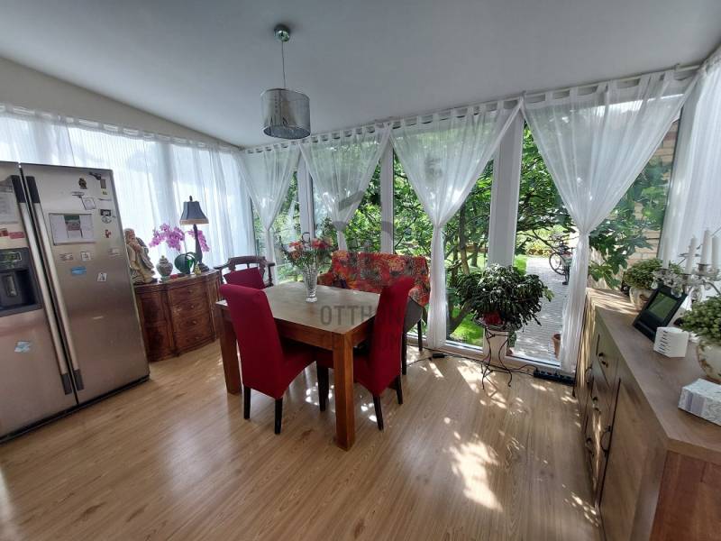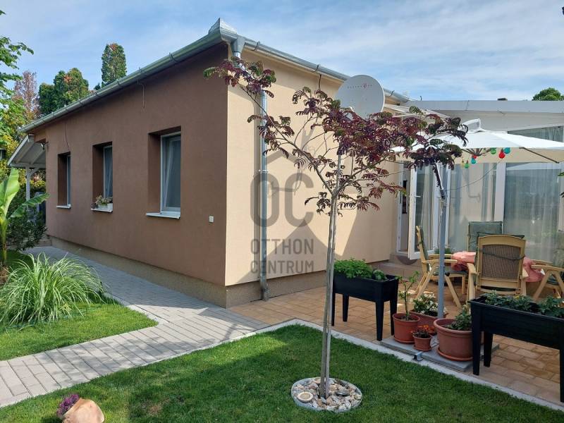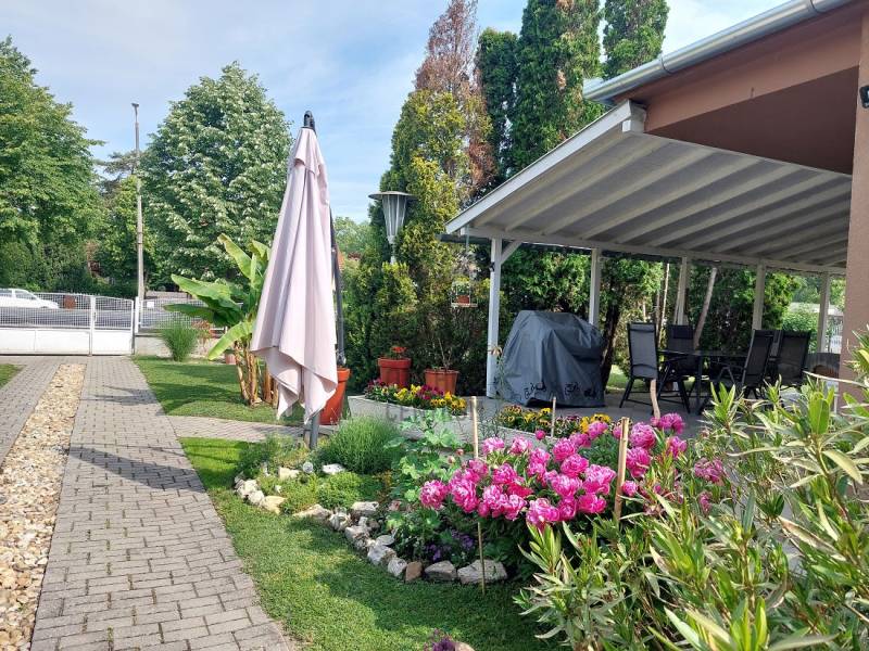 A strandtól csupán 400 méterre kínálunk eladásra egy nappali + 3 hálószobás ingatlant.Az ingatlan lakó besorolású, így alkalmas az Otthon Start hitelre.A ház a 70-es évek végén, téglából épült. Pár éve külső-belső felújításon esett át, új nyílászárókat, kívülről pedig szigetelést is kapott.Energetikai besorolása A+. Fűtése, hűtése hőszivattyús klímával és H tarifával megoldott. A tetőn napelemek kerültek felhelyezésre.A nappaliból egy hatalmas 35m2-es, árnyas teraszra léphetünk ki, amely növényekkel határolva ad intimitást az utca felől.Az épület hátsó részén gyönyörű, három oldalról, üveggel körülvett étkező található, amely alkalmas nagyobb vendégség fogadására is.A 720m2-es kert szépen gondozott, dísznövényekkel tarkított. Locsolása fúrt kútból megoldott.A hátsó részen gyümölcsfákkal beültetett. Almafák, szilva, barack, cseresznye, mellettük fűszernövények, paradicsom.A kertben még egy különálló 21m2-es épület is található, amely egy teljes értékű lakórésznek felel meg, konyhával, fürdőszobával felszerelt.A kisházhoz egy tároló és egy fedett beálló is csatlakozik.Gyalogosan vagy biciklivel, Balatonföldvár központja, a Yacht kikötő, a csodás Kvassay sétány, éttermek, bevásárlási lehetőség is percek alatt elérhető.Felkeltettem érdeklődését?Hívjon, akár hétvégén is!