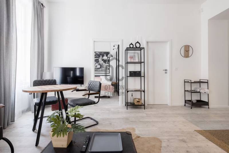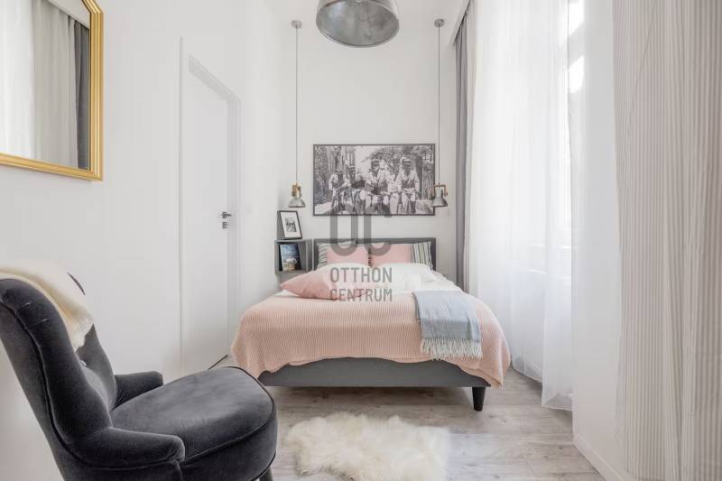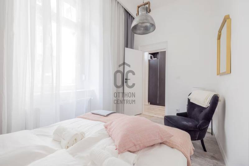 Kiadásra kínálok a VI. ker belső részének nyugodt utcájában egy nagyon szép és igen impozáns teljesen felújított belső és külső homlokzatú társasházban található 52 nm -es, remek alaprajzú N+ 2 hálós igényesen műszakilag és esztétikailag is teljesen felújított ingatlant, teljes bútorzattal együtt.Lássuk a részleteket:A VI. ker. belső részén, egyenlő távra az Andrássy úttól, az Oktogontól vagy a nyüzsgő VI. és VII. kerület határát is jelentő Király utcától egy kis nyugodt egyirányú utcában található az ingatlan.A klasszikus polgári épület külső homlokzata teljesen felújított - tükrözi a régi értékeket. Az épületbe lépve rendezettség fogad. A belső homlokzat és a kapuszín szintén felújított. A lakás a társasház II. emeletén található ide vagy lifttel vagy a szép szintén impozáns lépcsőházban jutunk fel.Az ingatlan teljes műszaki felújításon esett át ( ez magában foglalt mindent ) - a fotók magukért beszélnek!A lakásban egy kellemes méretű amerikai konyhás nappali kapott helyet, illetve egy kisebb és egy nagyobb hálószoba. Az egyik hálóhoz az alaprajzon is látható módon egy kis aranyos gardrób is tartozik. A beérkezésnél elég a tér, és itt is világos a lakás. Van elég hely lepakolni, megérkezni. Az amerikai konyhás nappali utcára néz, de mivel az utca csak egyirányú nagyon csendes. A képeken is látható, hogy gépesített konyha ( mikró, sütő, elszívó, főzőlap, mosogatógép stb. ) . A kellemes méretű nappaliban kis étkező, pihenő sarok és nappali rész lett kialakítva. Innen nyílik a nagy háló, melyben nagy méretű világítással is felszerelt gardrób szekrény kapott helyet. A fürdő is minden igényt kielégít - végre nem kell dönteni, hogy kád vagy zuhany, ugyanis mindkettő van! Kézmosó, mosógép és törölközőszárító is kellemesen elfér itt. A WC külön van a fürdőtől.Az ingatlan fenntartása nagyon kedvező.Az ingatlant egyedi, gáz cirkó kazán fűti, a hidegről klíma gondoskodik, gázóra, vízóra és villanyóra is van. A kktg. 21.415 Ft.A lakáshoz tartozik a pincében egy önálló tároló, mely 6 m2.Várom hívását, rugalmasan megtekinthető nagyon szép ingatlan. Keressen nyugodtan!
