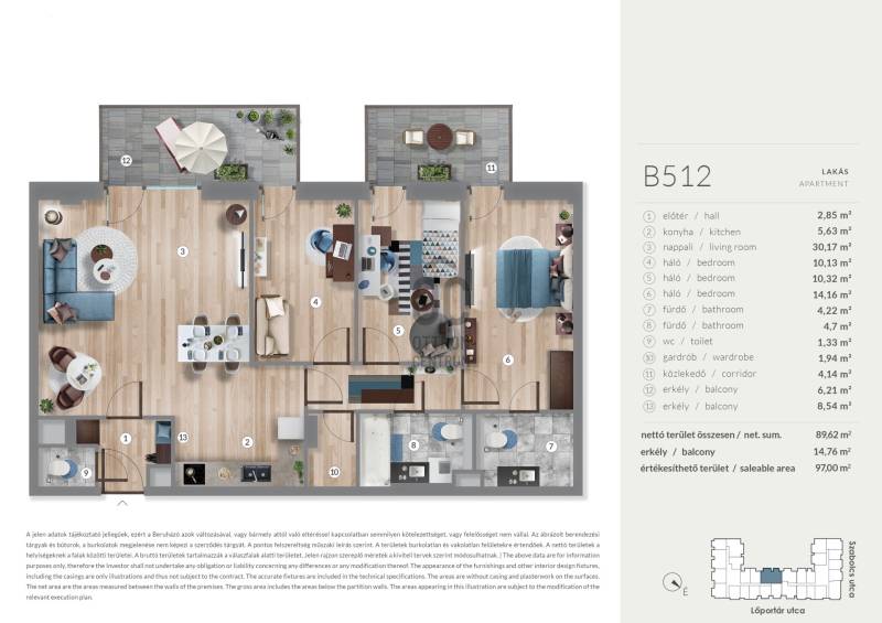 Projekt bemutatásaA kiváló elhelyezkedésű WestGate 4 lakópark a Dózsa György úttól és a Lehel úttól pár lépésre található, így a Belváros könnyedén megközelíthető autóval és tömegközlekedéssel egyaránt. A 4 ütemben épülő lakóparkban összesen közel 1000 lakás kerül megépítésre, melyből az első három ütem elkészültével több mint 700 lakás átadása már megtörtént.2-3-4 szobás lakástípusok elérhetőek, a csendes belső kertre néző családi otthontól a kisvárosias utcára néző lakáson keresztül az indusztriális-városi panorámát kedvelőkig mindenki megtalálhatja a hozzá illő ingatlant.A jelenleg legkorszerűbb hőszivattyús rendszer lehetővé teszi az otthonok energiatakarékos fenntarthatóságát. Lakásonként hőmennyiségméréssel ellátott felület fűtés-hűtés kerül kialakításra, interneten keresztül távolról elérhető és programozható, valamint kézi hőmérsékletállítási lehetőséggel,rejtett gépészeti vezetékekkel.A lakásokba okosotthon rendszer kerül beépítésre. Az okosotthon rendszer biztosítja a lakások magasabb szintű és hatékony üzemeltetését. A Vevőneklehetősége van három, különböző típusú okosotthon rendszer (alapcsomag) közül választani, amelyek egyike sem eredményezi a lakások vételárának növekedését.Igény esetén felár ellenében lehetőség van beépített bútorok megrendelésére is.A lakásokhoz mélygarázsban biztosított parkoló vásárolható, illetve emeleti tárolók is leköthetők.Extrák az épületben: közösségi nappali, könyvtár, közösségi autó, fészer és csomagpont valamint az összes lakás okosotthon-rendszerrel allátva kerül átadásra.Rohamosan fejlődő környék, remek befektetés!Fizetési ütemezés:10% - szerződéskötéskor90% - átadáskor (használatbavételi engedélyt követően)Várható átadás: 2027.12.31.