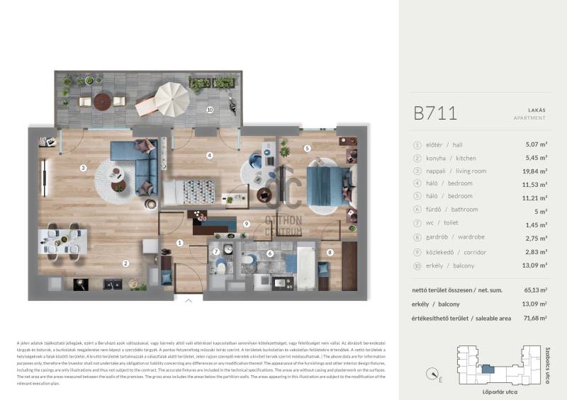 Erkély mérete: 13 m2