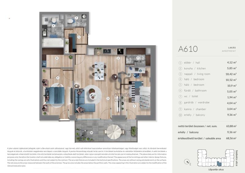 Projekt bemutatásaA kiváló elhelyezkedésű WestGate 4 lakópark a Dózsa György úttól és a Lehel úttól pár lépésre található, így a Belváros könnyedén megközelíthető autóval és tömegközlekedéssel egyaránt. A 4 ütemben épülő lakóparkban összesen közel 1000 lakás kerül megépítésre, melyből az első három ütem elkészültével több mint 700 lakás átadása már megtörtént.2-3-4 szobás lakástípusok elérhetőek, a csendes belső kertre néző családi otthontól a kisvárosias utcára néző lakáson keresztül az indusztriális-városi panorámát kedvelőkig mindenki megtalálhatja a hozzá illő ingatlant.A jelenleg legkorszerűbb hőszivattyús rendszer lehetővé teszi az otthonok energiatakarékos fenntarthatóságát. Lakásonként hőmennyiségméréssel ellátott felület fűtés-hűtés kerül kialakításra, interneten keresztül távolról elérhető és programozható, valamint kézi hőmérsékletállítási lehetőséggel,rejtett gépészeti vezetékekkel.A lakásokba okosotthon rendszer kerül beépítésre. Az okosotthon rendszer biztosítja a lakások magasabb szintű és hatékony üzemeltetését. A Vevőneklehetősége van három, különböző típusú okosotthon rendszer (alapcsomag) közül választani, amelyek egyike sem eredményezi a lakások vételárának növekedését.Igény esetén felár ellenében lehetőség van beépített bútorok megrendelésére is.A lakásokhoz mélygarázsban biztosított parkoló vásárolható, illetve emeleti tárolók is leköthetők.Extrák az épületben: közösségi nappali, könyvtár, közösségi autó, fészer és csomagpont valamint az összes lakás okosotthon-rendszerrel allátva kerül átadásra.Rohamosan fejlődő környék, remek befektetés!Fizetési ütemezés:10% - szerződéskötéskor90% - átadáskor (használatbavételi engedélyt követően)Várható átadás: 2027.12.31.