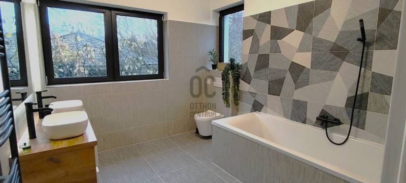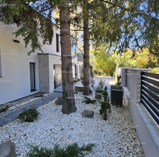 Fedezze fel ezt a kivételes lehetőséget Szentendre, Pismány városrészében, ahol egy új építésű, idén elkészült, modern ház várja Önt és családját. Az ingatlan a legmagasabb minőségi elvárásoknak megfelelően készült, közel 240 négyzetméteres alapterületén a nagyméretű világos nappalin, konyha-étkezőn, két fürdőszobán, mosókonyhán felül, 4 szoba és gardrób, plusz egy dolgozó sarok várja családjával. A nagyméretű, majdnem teljesen sík telken, ősfák és tudatosan telepített, gondozott örökzöldek, valamint a telek végében csordogáló patak adják a telek hangulatát. A békés, patakparti környezet, a madárcsicsergés, a friss levegő és a zöld panoráma, minden nap feltölti energiával, a tiszta, friss levegő sétára, futásra, túrázásra kerékpározásra csábítja.A ház tervezésekor, majd kivitelezése során a telek egyedi alaprajzának adottságait és meglévő növényzetének megóvása mellett az új növényzet telepítése is kiemelt szerepet kapott. Az újépítésű, Ytong falazatú, hőszivattyús fűtésrendszerrel ellátott épület, korszerű hőszigeteléssel, nyílászárókkal és energiatakarékos megoldásokkal biztosítja a kellemes klímát és az alacsony fenntartási költségeket egész évben. A zöldre néző nagy üvegfelületek beengedik a fényt, miközben a tágas, kertkapcsolatos nappali, a stílusos étkezővel és a nagyméretű terasszal a kényelmet és az eleganciát ötvözik. Több, mint 1000 négyzetméteres telkével ideális választás mindazok számára, akik a városi élet nyüzsgésétől távol, mégis könnyen megközelíthető helyen szeretnének élni. Az ingatlanban öt tágas szoba található, amelyek lehetőséget adnak a családi életre, valamint vendégek fogadására. A két fürdőszoba kényelmet biztosít a mindennapok során, így a reggeli rohanásban sem kell kompromisszumot kötnie. A közel 50 négyzetméteres terasz tökéletes helyszín a pihenésre, ahol élvezheti a gyönyörű panorámát, amely a környék varázsát tükrözi. Az újépítésű ingatlan a hőszivattyús fűtés és a klímaberendezés pedig garantálja a kellemes hőmérsékletet télen és nyáron egyaránt. A garázsban egy autó kényelmesen parkolhat, ezen felül a telken további két autó is elfér, így nem kell aggódnia a parkolási lehetőségek miatt. A környék csendes és biztonságos, ideális választás családok számára. Szentendre számos lehetőséget kínál a szabadidős tevékenységekre, legyen szó kirándulásokról, kerékpározásról vagy a helyi éttermek és kávézók felfedezéséről vagy kulturális élményekről, eseményekről. A közlekedési lehetőségek is kiválóak, hiszen a város könnyen megközelíthető autóval, de a tömegközlekedés is jól kiépített, így Szentendre és Budapest között gyorsan és kényelmesen közlekedhet. A családbarát ingatlan a természet nyugalmát és a városi kényelem közelségét kínálja, egyszerűen megközelíthető, csendes utcában, mégis percekre a városközponttól, óvodától, iskoláktól, üzletektől és tömegközlekedéstől.Ez az ingatlan nemcsak egy otthon, hanem egy életstílus megtestesítője, amely lehetőséget kínál az aktív, de mégis nyugodt életvitelre. Amennyiben érdekli ez a különleges ajánlat, kérem, ne habozzon kapcsolatba lépni velem, bármilyen kérdéssel vagy további információval kapcsolatban. Bizalommal kereshet, és szívesen segítek Önnek az ingatlan megtekintésében és a vásárlás folyamatában!