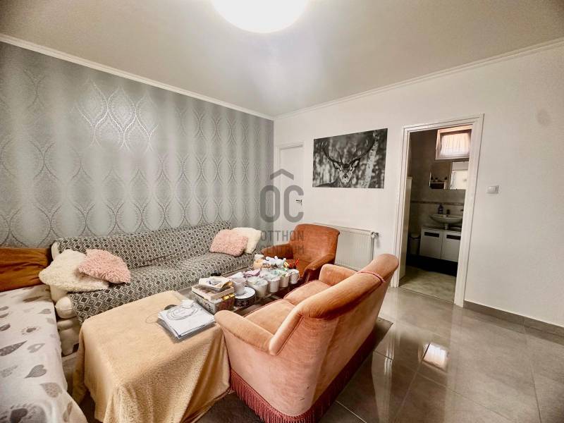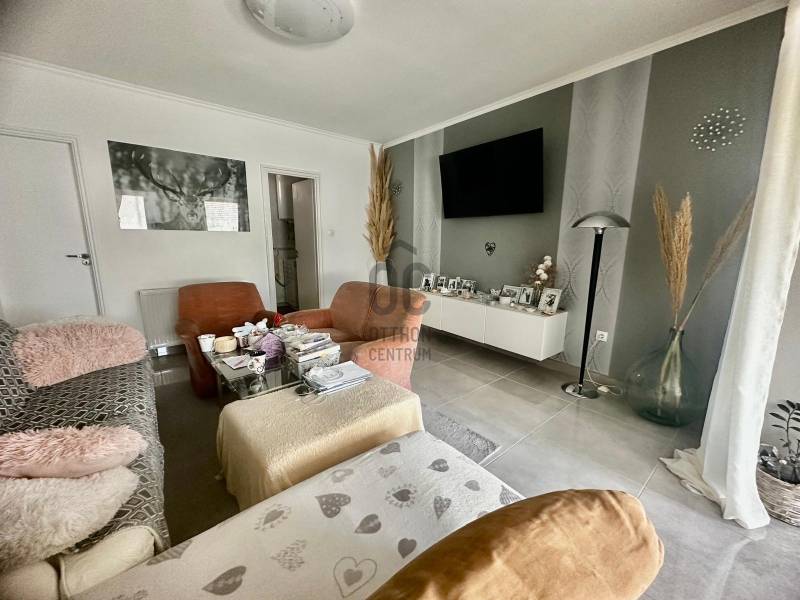 Látrány nyugodt, rendezett részén, a Balatontól néhány perces autóútra eladó egy 120 m²-es iker családi ház, közös 3006 m²-es telken. Ideális választás állandó otthonnak, nyaralónak vagy befektetésnek egyaránt.Főbb jellemzők:- Ingatlan típusa: iker családi ház- Alapterület: 120 m² - Telek mérete: 3006 m²- Szobák: nappali, tágas hall-társalgó + 3 tágas lakószoba- Helyiségek: konyha - étkező, előszoba, külön fürdőszoba és WC, tágas pince, mely a belső térből és kívülről is megközelíthető- Fűtés: pincében elhelyezett vegyes tüzelésű kazánról működő radiátoros rendszer - Parkolás: a ház előtt tágas térkövezett udvarrészen akár 3 autó részére, mely teraszként is funkcionál- Akadálymentes megközelítés (szinte teljesen sík felület)Az ingatlanról:A ház világos, tágas terekkel rendelkezik, elosztása praktikus és jól élhető. A nappali és a három nagy méretű szoba kényelmes családi életteret biztosít.Az ingatlan igényesen kialakított, ízléses belső enteriőrrel rendelkezik, kellemes színek harmonikus összhangjával.Külön víz- és villanymérőórákkal rendelkezik, gázcsonk a telken belül.Telek és környezet:A 3006 m²-es telek kivételes lehetőségeket kínál. A házhoz a telken belül vezető út biztosít kényelmes megközelítést, melyet közösen használnak az ikerházak lakói. A telken található még egy raktárépület is, mely megközelítése is ezen belső útszakaszon történik.Az ingatlan osztatlan közös tulajdonú telken helyezkedik el, használati megosztással.Elhelyezkedés:Látrány kedvelt, csendes település a Balaton déli partjától pár percre. Ideális választás azoknak, akik a balatoni életérzést szeretnék ötvözni a falusi nyugalommal és a természet közelségével.