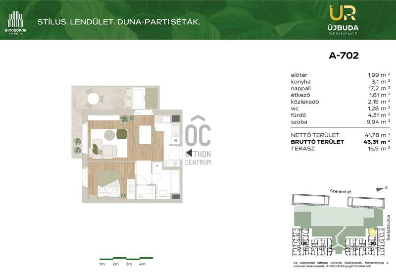 Projekt bemutatásaA Budapest XI. kerületében, a Barázda utcában megvalósuló Újbuda Residence nem csupán egy új építésű lakópark, hanem egy olyan innovatív fejlesztés, amely kivételes lehetőséget kínál mindazok számára, akik otthonukat vagy befektetésüket egy dinamikusan fejlődő, mégis nyugodt környezetben képzelik el.Ez a modern, 240 lakóegységet magában foglaló fejlesztés Újbuda folyamatosan megújuló környezetében, a Duna-parttól mindössze egy karnyújtásnyira található. Az épület kiváló választás lehet azok számára, akik a fővárosban szeretnének élni, de mégis közel a természethez és a vízparthoz. Az új lakások mellett tárolók és gépkocsi beállók is rendelkezésre állnak, ezzel biztosítva a lakók maximális kényelmét és praktikus életvitelét. A változatos méretű lakások között mindenki megtalálhatja a számára legmegfelelőbbet, legyen szó kisebb vagy nagyobb lakóterületről.A fejlesztés keretében egy fiatalok számára ideális, kisebb lakóegységekből álló épület is megvalósításra kerül, ami különösen vonzó lehet a fiatalabb generációk számára, akik a város nyüzsgése mellett szeretnének élni, ugyanakkor közel a természethez és a szabadidős tevékenységekhez.Az Újbuda Residence fejlesztésében változatos méretű és elrendezésű lakások kerülnek kialakításra, a 27 m2-es stúdiólakásoktól egészen a 70 m2-es, háromszobás lakásokig. Az épület alsóbb szintjein található lakások saját privát kertkapcsolattal rendelkeznek, míg a felsőbb emeletekről lenyűgöző panoráma nyílik a Gellért-hegyre. Minden lakás erkélyes, így a lakók élvezhetik a szabad levegő nyújtotta kényelmet és a környező zöldterületek látványát.A lakások kialakításánál elsőrangú belsőépítészeti megoldásokat alkalmaztak, amelyek több mint 4000 korábbi vásárlói visszajelzés alapján kerültek kidolgozásra. A belső anyagválasztékot a legjobb minőségű alapanyagokból állították össze, a lakások pedig egyedi igények szerint is alakíthatók, így mindenki megtalálhatja a számára legideálisabb megoldást.A rozsdaövezeti besorolásnak köszönhetően a vásárlók 5%-os áfa-visszaigénylésre is jogosultak, ami tovább növeli a fejlesztés vonzerejét.Az Újbuda Residence ideális választás fiatal egyedülállók, párok, kisgyermekes családok, valamint középkorúak számára, akik olyan lakóhelyet keresnek, ahol egyszerre élvezhetik a város nyújtotta lehetőségeket és a természet közelségét. A fejlesztés fiatalos, modern megjelenése, valamint a tágas parkok, zöldterületek biztosítják a nyugodt és kellemes életvitelt.A lakópark egyediségét tovább növeli a lakók számára kialakított tágas, dús növényzettel borított belső kert, amely tökéletes helyszínt biztosít a pihenésre és a kikapcsolódásra. Az épület alsóbb szintjein elhelyezkedő lakások privát kertkapcsolata pedig még inkább otthonossá varázsolja az itt eltöltött időt.