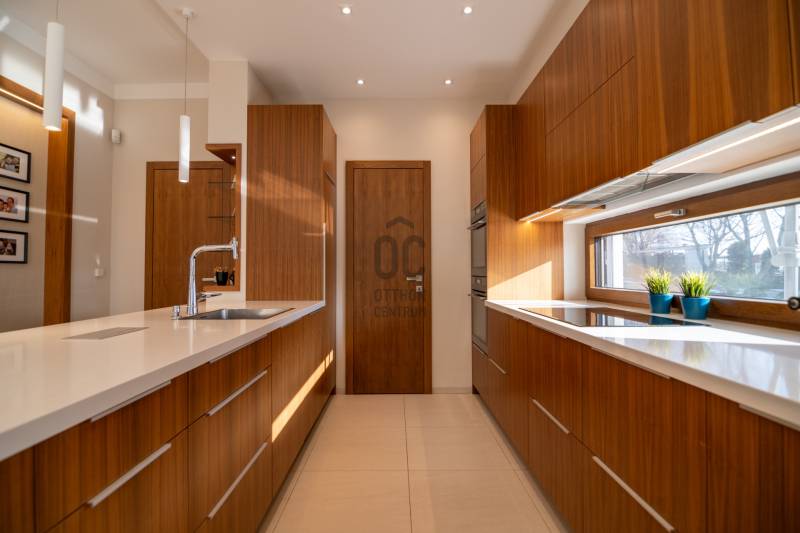 Prémium modern családi ház 2 nappalival, 7 szobával, szaunával – Madárhegy legszebb részén, örök panorámávalBudapest XI. kerületének egyik legkeresettebb, exkluzív lakóövezetében, Madárhegy csendes, rendezett utcájában kínálunk megvételre egy valóban különleges, modern minimál stílusú családi házat. Az ingatlan ritka értéke a teljes intimitás, a természet közelsége és az a nyugalom, amely hosszú távon is stabil értéket és élhető mindennapokat biztosít.Ez az otthon nemcsak méreteiben, hanem gondolkodásmódjában is prémium: két tágas nappalival, hét különálló szobával, szaunával és energiatudatos, alacsony fenntartású műszaki megoldásokkal készült – mindazzal, amire egy modern, családközpontú élethez szükség van.Főbb méretek, alapadatokTeljes lakóterület: 323 nmTerasz: 61 nmErkély: 37 nmKert: kb. 1400 nmTelek mérete: 1661 nmGarázs: 2 autó részére, zártFöldszint – a közös élmények tereA földszint szíve a nagyvonalúan megnyitott nappali–étkező–konyha egység, ahol a háromrétegű, nagyméretű üvegfelületek természetes fényt és közvetlen kapcsolatot biztosítanak a terasszal és a kerttel. Ezek a nyitott terek ideálisak a család számára: közös étkezésekhez, beszélgetésekhez, ünnepekhez vagy akár baráti összejövetelekhez.Földszint:Előtér: 9,15 nmNappali: 32 nmÉtkező: 17,6 nmKonyha: 13,7 nmWC: 3,3 nmDolgozószoba / vendégszoba: 14 nmSportszoba / spórolásra is alkalmas multifunkciós szoba: 18 nmGarázs: 37 nmA földszinti sportszoba igény szerint alakítható edzőtérnek, hobbihelyiségnek vagy akár energiatakarékos tároló- és gépészeti kiegészítő térnek, így a ház működése hosszú távon is gazdaságos marad.Emelet – privát terek és nyugalomAz emeleten kapott helyet a második nappali, amely tökéletes családi pihenőtér, gyerekeknek kialakított lounge vagy csendes esti kikapcsolódás helyszíne lehet. A szint elrendezése ideális nagycsalád számára is: minden hálószoba világos, jól bútorozható és funkcionálisan elkülönül.Közlekedő: 12,4 nmFürdőszoba: 7,7 nmSzobák: 13,5 nm | 13,6 nm | 13,5 nm | 21 nmSzülői háló: 17 nm – teraszkapcsolattal és panorámávalVendégszoba: 9,2 nmSzülői fürdő: 13,2 nmA szülői háló saját, prémium felszereltségű fürdővel és közvetlen teraszkapcsolattal rendelkezik, ahonnan zavartalan kilátás nyílik a zöld környezetre. A földszinten kialakított szauna a mindennapok részévé teszi a pihenést és a regenerálódást.A magas minőségben kialakított konyhát egyedileg gyártott, praktikus beépített bútorok, AEG háztartási gépek és indukciós főzőlap teszik teljessé, míg a bárszékek kellemes teret biztosítanak a kötetlen konyhai beszélgetésekhez. A mindennapi komfortot vízlágyító rendszer és padlófűtés biztosítja.Az enteriőr hangulatát gondosan megtervezett világítás, dizájner lámpák és igényesen kiválasztott burkolatok határozzák meg, amelyek minden részletükben az esztétikumot és a minőséget képviselik. A háztartási helyiség beépített szekrényekkel és praktikus pakolófelületekkel segíti a mosó- és szárítógép melletti házimunkát.Az ingatlan teljes bútorzattal kerül értékesítésre, mivel a berendezések jelentős része egyedileg gyártott, kifejezetten ehhez az otthonhoz tervezett darab.Környezet és elhelyezkedésMadárhegy egyik legnagyobb értéke az egységes utcakép, az alacsony beépítettség és a zöld környezet. A házat utcafronti növényfal védi, így a kert és a terasz teljes privát szférát biztosít.Rövid időn belül elérhetők:több óvoda és bölcsődekiváló állami és magániskolák, valamint nemzetközi intézmények Újbudánbevásárlási lehetőségek, sport- és kirándulóhelyekA környék presztízse folyamatosan növekszik, ami az ingatlant nemcsak szerethető otthonná, hanem biztos hosszú távú befektetéssé is teszi.Műszaki tartalom – energiatudatos prémiumDaikin 11 kW-os hőszivattyú – mennyezethűtés-fűtés és padlófűtésHelios hővisszanyerős szellőztető rendszerLoxone okosotthon rendszer – fűtés, hűtés, árnyékolás telefonról vezérelhetőSchneider ipari kategóriás elektromos elosztó9,5 kW-os napelemes rendszer 8 kW-os Huawei inverterrel.Szaldó elszámolás 2030-igÁtlagos villanyszámla: kb. 5.000 Ft/hóTeljeskörű medence-előkészítés a kertbenEz az ingatlan azoknak készült, akik nem kompromisszumot keresnek, hanem minőséget, tágas közös tereket, családi élményeket és hosszú távon fenntartható megoldásokat Budapest egyik legjobb részén.Vegye fel velem a kapcsolatot, és egyeztessünk egy személyes megtekintést – ez az otthon élőben mutatja meg igazán, miért lehet könnyű beleszeretni.