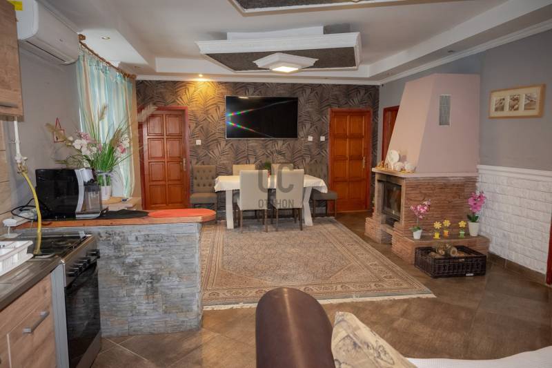 Kedves Érdeklődő!Eladásra kínálunk Oros csendes, élhető részén egy 88,82 nm-es családi házat, amelyhez egy ritkaságnak számító, 8.586 nm-es telek tartozik. Az ingatlan ideális választás mindazok számára, akik tágas életteret, nyugalmat és hosszú távú lehetőségeket keresnek – akár gazdálkodásra, akár befektetésre, akár többgenerációs gondolkodásban.A ház elrendezése kifejezetten élhető:két külön nyíló szoba mellett egy nappali–konyha–étkező egybenyitott tér biztosítja a családi élet központját. Emellett fürdőszoba, előszoba és kamra is helyet kapott. A nappaliból közvetlen kijárat nyílik a 22,67 nm-es, nagy fedett teraszra, amely tökéletes helyszíne lehet pihenésnek, baráti összejöveteleknek vagy akár egész évben használható kültéri élettérnek.A ház beton alapra épült, vegyes falazattal, onduline tetőfedéssel. A fűtés jelenleg gázkonvektoros, azonban radiátoros rendszer is kiépítésre került, így egy gázkazán felszerelésével könnyedén gázcirkó fűtésre alakítható. A nappaliban egy hangulatos kandalló is található, továbbá hűtő-fűtő klíma gondoskodik az egész éves komfortérzetről.Az ingatlan akár teljes berendezéssel együtt is megvásárolható, ami jelentősen megkönnyíti a gyors költözést vagy az azonnali hasznosítást.A telek igazi értéket képvisel:a 8.586 nm-es területen megtalálható– egy egyállásos garázs,– fészer,– fatároló,– valamint külön melléképület is.Fontos lehetőség, hogy az ingatlan kisebb telekrésszel is megvásárolható, ebben az esetben az ár értelemszerűen kedvezőbb, így többféle vevői igényhez is rugalmasan igazítható.A birtokbaadás szinte azonnali, így az ingatlan gyorsan hasznosítható, legyen szó költözésről, vidéki életkezdésről vagy befektetésről.Ez a ház nem csupán egy ingatlan, hanem lehetőség: térre, nyugalomra, fejlődésre és hosszú távú értékre.A hirdetésben szereplő információk a megbízótól kapott adatok alapján készültek, pontosságukért felelősséget nem vállalunk! AZ ALAPRAJZ CSAK TÁJÉKOZTATÓ JELLEGŰ!Amennyiben vásárláshoz hitelre is szüksége van, független hitel tanácsadónk ingyenesen tud Önnek segítséget nyújtani a legjobb konstrukciók kiválasztásában és a folyamat lebonyolításában. Irodánk kereső ügyfeleinknek teljes körű szolgáltatást nyújt, szakszerű tanácsadással, energetikai tanúsítvány elkészítésével, hitelügyintézéssel és profi ügyvédi segítséggel. Abban az esetben ha az ingatlan felkeltette érdeklődését keressen bizalommal!