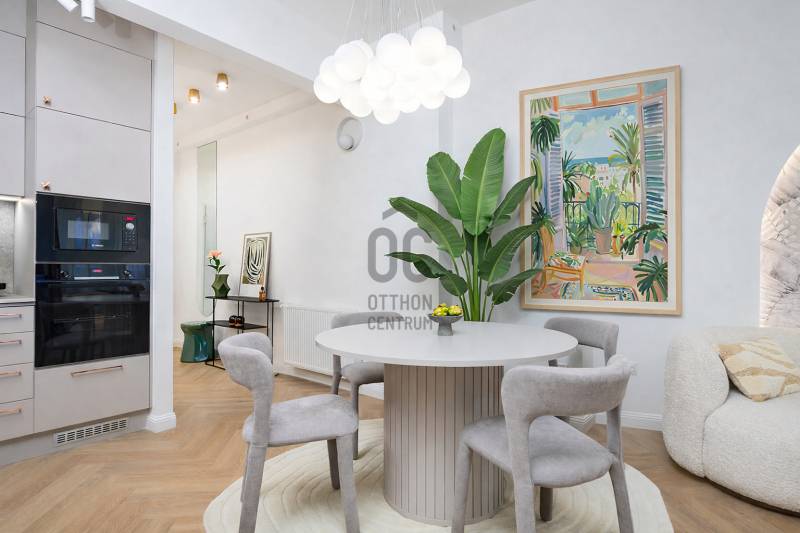 AZONNAL KÖLTÖZHETŐ!A képeken is látható berendezést, gépesítést, interiort tartalmazza az ár!Budapest I.kerületében, Gellért-hegy és Naphegy közvetlen találkozásánál eladó zöld és csendes utcában, de mégis központi helyen 3 szobás, erkélyes, gyönyörű napfényes sarki lakás, mely teljes felújításon esett át minden részletében. Átgondolt, letisztult modern design jellemzi. Minden helyiségben klíma és redőny! Alacsony közös költség- és rezsijű lakás!Az ingatlan egy szép homlokzatú, liftes modernista épületben található, mely a Bauhaus esztétikáját idézi. Ez a környék a régi budai polgári világ és a modern városi élet találkozása. Bár a környék idillien nyugodt, a város minden pontja gyorsan megközelíthető:Buszok: 8E, 110, 112, 178 (Deák tér, Ferenciek tere, Astoria irányába)Villamosok: 17, 56, 59, 61 (Széll Kálmán tér, Móricz Zsigmond körtér)M4 metró: Szent Gellért tér – kb. 10 perc sétaAutóval: közvetlen kapcsolat az Erzsébet híddal, BAH-csomóponttal és Alkotás úttalA parkolás jellemzően utcai, fás oldalsávban, az utca forgalma kifejezetten alacsony.Lokáció:A közelben található:Gellért-hegy és Citadella – 5 perc sétaTabán park – 3 perc gyalogGellért Szálló és Fürdő – 8 percMOM Park bevásárlóközpont – 4 perc autóvalDéryné Bisztró (Krisztina tér 3.), Tabáni Terasz Étterem (Krisztina krt. 1.) néhány perc alatt elérhető.