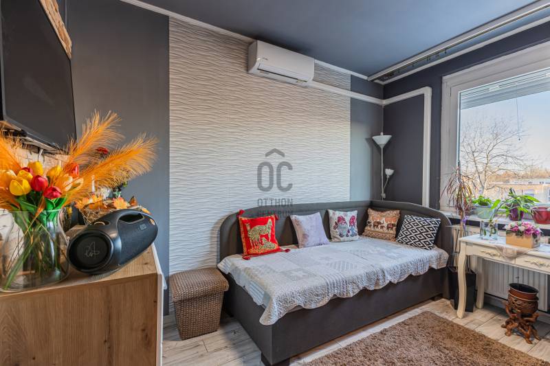 Kívül panel, belül igazi álomotthon ez a lakás!Egy különleges ingatlant kínálunk Újpalota közkedvelt részén, a Kőrakásparkban. A lakás 2020--ban teljes felújításon esett át, de tulajdonosai azóta is folyamatosan szépítették, modernizálták.Az 53 m2-es, nappali + 2 hálószobás lakásban felújításra került az elektromos hálózat, 2 hűtő-fűtő klíma került beszerelésre. Kialakításra került egy nagy ablakos, mordern, gépesített konyha, kis étkezősarokkal. A fürdőszoba és a külön helyiségben lévő mellékhelyiség is átépítésen esett át. Mindenhol új, modern burkolatok, desing elemek kerültek beépítésre. A lakásban egy különálló, rendkívül praktikus háztartási helyiség is kialakításra került, ahol a mindetn elnyelő polcok mellett, a mosó- és szárítógép, valamint a hűtőszekrény is helyet kapott.A lakás előtt leválasztára került egy folyosószakasz, amely praktikus előszobaként funkcionál.A lakáshoz tartozik egy nagy méretű saját tároló a pincében, melyet az új tulajdonos tovább bérelhet.A közösköltség 23 ezer forint, mely tartalmazza a felújítási alapot és a pince díját is. Az egyedi mérésű házközponti fűtésnek köszönhetően rendkívül alacsony a rezsi!Az ingatlan egy szépen karbantartott, rendezett, liftes, jó lakóközöséggel rendelkező társasház 4. emeletén található. A ház teljeskörű felújításon esett át a panelprogram keretében, melynek költségei már nem terhelik az ingatlant. A házban kamerarendszer is üzemel. Kiváló elhelyezkedés. A lakótelep ezen részén (ingyenes övezetben) mindig akad parkolóhely, de a környékbeli bekerített parkolókban is 20-25 ezer forint havidíjért bérelhetők helyek. Bevásárlási lehetőség (Aldi, Lidl, Pólus Center, Ázsia Center), oktatási- és egészségügyi intézmények, gyógyszertár, tászótér, szánkódomb, kiserdő, kutyafuttató 5-10 percek sétasátolságon belül elérhetők.Kiváló közlekedés. Nappali és éjszakai buszok (7, 7E, 8E, 108E, 133E, 196, 196A, 296, 130, 46, 146), valamint a 69 villamos megállója 5 perc sétára. A lakás kíváló állapotú, azonnal költözhető! Hitelre is megvásárolható! Nézze meg még ma! Nem fog csalódni! Tényleg olyan, mint a képeken!