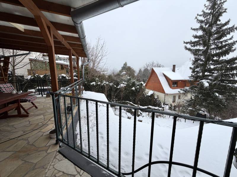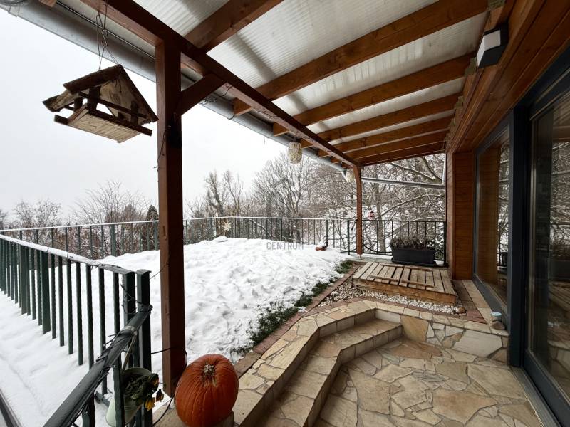 Ritka lehetőség a piacon: állandó panoráma, teljes nyugalom, mégis mindössze 15 percre Budapesttől!Ez a 150nm-es világos, tágas otthon Budakeszi legszebb részén helyezkedik el, ahol sem autóforgalom, sem szomszédzaj nem zavarja a mindennapokat.Otthon, ahol egész nap süt a nap.A nappali, a terasz és a hálószobák egész nap természetes fényben fürdenek.A 60 nm-es terasz egy része füvesített, automata öntözőrendszerrel felszerelt, igény esetén jakuzzi is telepíthető, így saját privát wellness-szigeted lehet.Ősztől tavaszig a teraszról és a nappaliból páratlan naplementékben gyönyörködhetsz.Környezet és közlekedés:A környék csendes, zöldövezeti, igazi kis sziget a város mellett.A buszmegálló 5 perc sétára található, a Budapest-bérlettel használható járatok 5 percenként közlekednek, így a főváros gyorsan és kényelmesen elérhető, dugóállás nélkül, mindkét irányban.Műszaki állapot:•A ház 2007-ben társasházzá nyilvánított, 2019-ben teljes felújításon és 12 cm-es szigetelésen esett át•Szintek teljesen elszeparáltak, saját bejárattal és külön helyrajzi számmal•A telek adottsága miatt a szomszédokkal gyakorlatilag nem lehet találkozni•Fa, dupla üvegű nyílászárók•Viessmann kondenzációs kazán•Alacsony rezsi: fűtés ~15.800 Ft/hó, áram ~5.700 Ft/hóKert és parkolás:•A lakáshoz kb. 200 nm saját kert tartozik•Emellett 702 nm közös, gondozott kert is rendelkezésre áll, gyümölcsfákkal, virágokkal, sütögető hellyel•Ingyenes utcai parkolás, saját beállón•Extra: 1 év ingyenes parkolóhely a pár perc sétára található teremgarázsban (a vételár része!)Infrastruktúra:•DM, Coop, pékség, éttermek, park és játszótér (10 perc séta)•Két irányban 5 perc alatt cukrászdák, kávézók•Kiváló óvodák, iskolák (állami és magán), erdei és parki játszóterek•Közeli védőnői, gyermekorvosi és felnőtt orvosi központ•Kedves, összetartó, segítőkész lakóközösségKinek ajánljuk?Tökéletes választás:✔ családoknak✔ külföldről hazatelepülőknek✔ befektetőknekakik exkluzív, panorámás, nyugodt otthont keresnek közel Budapesthez.Gyors 30 napos birtokbaadás! Rugalmasan megtekinthető, további információért és megtekintési időpontért hívjon!