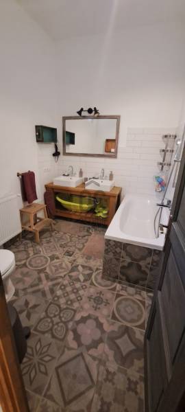 Eladó egy gyönyörűen felújított, önálló családi ház Mindszentkállán, a csodálatos Káli-medence központjában!Hasznos alapterület: 140 m²Telek mérete: 809 m²Az eredetileg 1950-es években épült, földszintes, kő falazatú ingatlan 2016-ban teljes felújításon esett át, azóta modern, kényelmes otthont kínál. A ház praktikus beosztású: tágas nappali-étkező és amerikai konyha gondoskodik a közös élményekről, a kapcsolódó terasz pedig tökéletes helyszín baráti vagy családi összejövetelekhez.•4 szoba és 2 fürdőszoba – ideális két generációnak, vagy vendégháznak•Tetőtér beépíthető – jelenleg egyterű, de további helyiségek kialakíthatók•809 m² kert, 5 autónak parkoló – jelenleg játszótérrel a legkisebbek számára•Háztartási helyiség (22 m²) – külső bejárat, akár mosókonyha vagy tároló is lehet•Teljes közmű, gázkazános fűtés radiátorokkalKiváló választás nagycsaládosoknak, idősebbek számára kényelmes földszintes kialakításával, de befektetőknek is ajánljuk, hiszen vendégházként, apartmanként is jól hasznosítható. A ház igazi minőségi otthon, ahol minden részletre ügyeltek.A hangulatos falu központja – bolt, étterem, fagyizó – mindössze néhány perces séta, így autóra sincs szükség a mindennapi ügyintézéshez!Amennyiben kérdése merül fel az ingatlannal kapcsolatban vagy szeretné azt megtekinteni, kérem keressen az alábbi elérhetőségek egyikén!Az adatok kizárólag a megbízóink által rendelkezésünkre bocsátott információkon alapulnak. Fentiekre tekintettel, az adatok teljességéért, helyességéért és aktualitásáért nem vállalunk felelősséget.Az árváltozás, adatmódosítás és közbeni értékesítés jogát fenntartjuk, mindezekért jogi felelősséget nem áll módunkban vállalni.