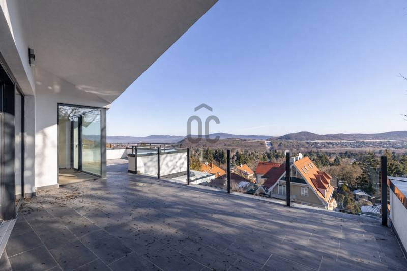Ha olyan otthont keresel, ahol a panoráma nem alkalmi élmény, hanem a mindennapok természetes része, akkor ezt a lakást érdemes megnézned.ÜDV ITTHON!A II. kerület egyik legszebb, zöldövezeti részén, Budaligeten, egy mindössze háromlakásos, intim társasház legfelső szintjén kínálunk megvételre egy belső kétszintes, panorámás DUPLEX penthouse-t, közvetlen erdőkapcsolattal. Itt valóban megérkezik az ember: csend, zöld, fény és tér veszi körül.Üdv itthon!A lakás nettó 103 m²-es (bruttó 124 m²) belső tere nagyvonalú és átgondolt, amelyhez három terasz kapcsolódik, összesen 64 m² alapterülettel. A teraszok és az óriási üvegfelületek miatt a természet folyamatosan jelen van – reggel madárcsicsergéssel indul a nap, este a panoráma nyugtató látványával zárul.Tér, ami élményt adAz alsó szinten egy világos, tágas nappali–konyha–étkező tér kapott helyet, amely ideális mind a hétköznapokhoz, mind vendégek fogadásához. Innen több terasz is közvetlenül elérhető, így a kinti és benti terek szinte összeolvadnak.Ezen a szinten található egy hálószoba, gardrób és fürdőszoba is – tökéletes vendég- vagy dolgozószobának.A felső szint már a teljes nyugalomé: egy különálló hálószoba saját gardróbbal és fürdőszobával, ahol a tér igazi különlegessége a teljes üvegfal. Ez a megoldás vizuálisan összeköti a szinteket, miközben egészen egyedi, modern hangulatot ad – ritka, látványos és nagyon „penthouse-érzés”.Luxus, ami nem hivalkodik – csak működikA lakás műszaki tartalma valóban felső kategória, minden kompromisszum nélkül:Panasonic hőszivattyús rendszerPadlófűtés és mennyezethűtés a tökéletes hőérzetértHővisszanyerős szellőztető rendszerHáromrétegű, reflexiós üvegezésű nyílászárókElektromos ablaknyitásDigitális videós kaputelefon és riasztórendszerKözponti vízszűrő rendszerLakásonként 3×32A elektromos teljesítményElektromos autótöltéshez kiépített háromfázisú csatlakozásA házban 6 személyes hidraulikus lift szolgálja a kényelmet.A lakáshoz 2 garázsbeálló és egy 14 m²-es tároló tartozik (külön megvásárolandók).Kinek ideális ez az otthon?Annak, aki:szereti, ha a természet szó szerint karnyújtásnyira van,értékeli a csendet, a panorámát és az intimitást,nem tömegingatlant keres, hanem egyedi, ritka lehetőséget,hosszú távon gondolkodik, és tudja, hogy az ilyen adottságú ingatlan mindig érték marad.Hívj!
