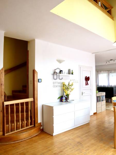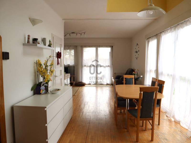 Csendes, zöld, családias környezetben lakóparki lakás eladó!Kőszegen, csendes, családias lakóparkban vált eladóvá ez a kertkapcsolatos, kertre néző, 180 nm-es, egyedi tervezésű, kétszintes sorházi lakás.Az ingatlan Kőszeg kedvelt lakóövezetében, csendes, nyugodt környezetben, a belvároshoz közel helyezkedik el egy 4 lakásból álló sorházban.A lakás földszintjén előszoba, konyha, étkező, nappali, egy hálószoba, egy kisebb fürdőszoba, kazánház, kamra és tárolóhelyiségek kaptak helyet. A nappaliból és az étkezőből jutunk a két teraszra, onnan pedig a kizárólagos használati joggal rendelkező, jól szeparált, 542 nm-es parkosított kertbe.Szép kivitelű, kényelmes lépcső vezet az emeletre, ahol 5 hálószoba, 2 fürdőszoba, egy gardróbszoba van, valamint a folyosón beépített szekrény szolgálja a tárolási lehetőséget. A galéria jellegű folyosóról beláthatjuk a díjnyertes tervezésnek köszönhető izgalmas, napfényes tereket.Az ingatlan hőszigetelt műanyag nyílászárókkal szerelt, a fűtésről és a melegvíz-ellátásról egy puffertartállyal kiegészített kondenzációs gázkazán gondoskodik.A ház előtt 2 gépkocsi számára biztosított a parkolás lehetősége, vagy akár fedett parkoló is kialakítható az épület mellett.A lakás átlagos állapotú, igény szerint felújítandó, remek adottságokkal bíró ritkaság az ingatlanpiacon.Kiváló lehetőség nagycsaládosoknak, összeköltözőknek, de akár önálló családi ház alternatíváját keresőknek is. Számos lehetőséget rejt magában ez a különleges tervezésű ház, mely csak Önre vár, hogy új élettel töltse meg napfényes tereit!További információkért és megtekintési időpont foglalásáért kérem, hívjon bizalommal!Hitelre van szüksége? Az Otthon Centrum az ország egyik legnagyobb és legmegbízhatóbb hitelközvetítőjeként, teljes körű és díjmentes hitel ügyintézéssel, biztosításkötéssel áll rendelkezésére! Kérje személyre szabott ajánlatunkat Kollégáinktól!Válassza ki az Önnek legmegfelelőbbet!