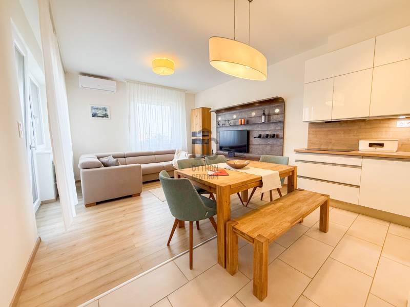 Prémium minőségű, teljesen berendezett, alig lakott lakás eladó Hegykőn !Hegykő kedvelt, nyugodt részén, Soprontól mindössze 17 km-re, 2020-ban épült, modern társasházban kínálunk megvételre egy rendkívül igényesen kialakított, azonnal költözhető lakást. Főbb paraméterek:Alapterület: 71 m²Emelet: 1. emeletElrendezés: amerikai konyhás nappali , 2 hálószoba, 2 erkély, külön WC, kamraFűtés: házközponti fűtés ( Hibrid hőszivattyú, gáz ) , padlófűtéssel, radiátorokkalHűtés: klímaberendezésParkolás: saját gépkocsi-beálló ( +2,9 M Ft )Állapot: újszerű, prémium kivitelezés, minőségi anyagokkal, berendezéssel.✨ Amitől igazán különleges:- Teljes berendezéssel és bútorzattal eladó – csak költözni kell ( tényleg teljes berendezéssel, beleértve mosó és szárítógépet bútorokat, MINDENT! )- Igényes konyhabútor Bosch konyhagépekkel ( sütő, mikró, kerámia főzőlap, elszívó , mosogató, hűtő ) - Modern, letisztult belső design- Minőségi bútorok, burkolatok és egyedi megoldások- Világos, jól élhető terek- Műanyag külső nyílászárók, 3 rétegű üvegezéssel,- Motoros, alumínium redőnyök- Kiváló energiahatékonyság, alacsony fenntartási költségek- A lakást alig lakták, csak időszakos tartózkodásra használták. ElhelyezkedésHegykő kiváló infrastruktúrával rendelkező, folyamatosan fejlődő település, termálfürdőjéről és nyugodt környezetéről ismert. Ideális választás állandó lakhatásra, nyaralónak vagy befektetésnek is egyaránt hiszen a jelenlegi tulaj vissza is bérelné.ÖsszegzésEz a lakás tökéletes választás azok számára, akik modern, igényes otthont keresnek kompromisszumok nélkül, és fontos számukra a jó környezet és akár az azonnali költözés lehetősége.Hitelre van szüksége??Az Otthon Centrum az ország egyik legnagyobb és legmegbízhatóbb hitelközvetítőjeként, teljes körű és díjmentes hitelügyintézéssel, biztosításkötéssel áll rendelkezésére!Kérje személyre szabott ajánlatunkat Kollégáinktól!