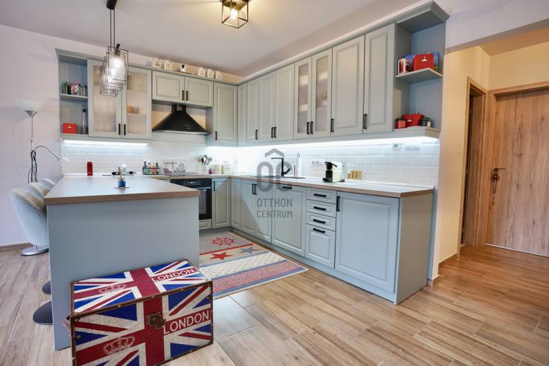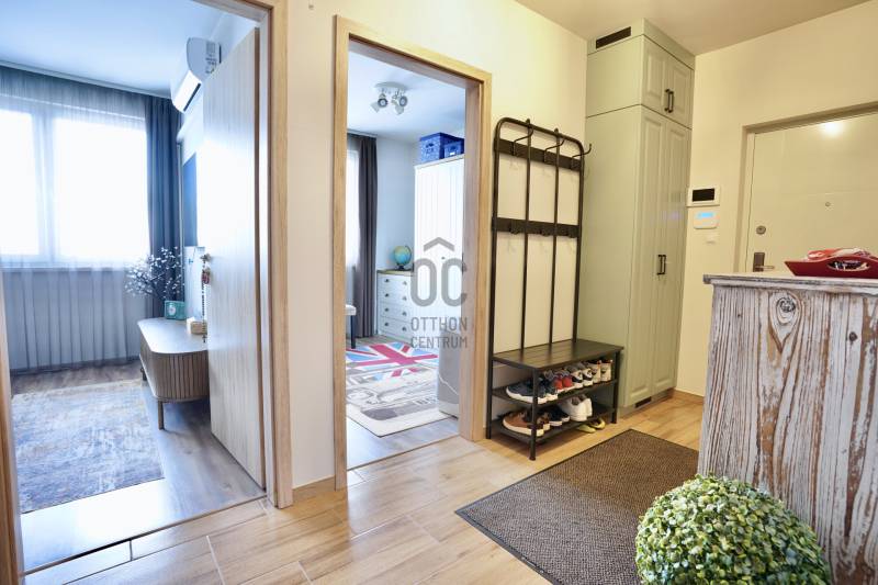 Modern, újszerű lakás Kispest kertvárosában – saját beállóval, elektromos autó töltési lehetőséggel.Budapest XIX. kerületében, Kispest kertvárosi részének csendes, rendezett utcájában, egy 2022-ben épült, mindössze 6 lakásos modern társasházban eladó egy 78,43m²-es, kiváló állapotú, lakás.Az ingatlan ideális választás családoknak vagy azoknak, akik nyugodt környezetben, mégis jó infrastruktúra mellett keresnek modern otthont.A lakás elosztása kifejezetten praktikus: tágas, világos amerikai konyhás nappali, 3 külön nyíló hálószoba, valamint 2 fürdőszoba WC-vel (egy kádas és egy zuhanyzós).A kényelmet és az alacsony fenntartási költségeket padlófűtés, minden helyiségben hűtő-fűtő klíma, valamint korszerű műszaki tartalom biztosítja.A biztonságról riasztórendszer és videós kaputelefon gondoskodik.Főbb extrák:elektromos alumínium redőnyökszúnyoghálókcsendes belső kert használatamagasföldszinti elhelyezkedéselektromos autó töltési lehetőségA lakáshoz saját udvari gépkocsibeálló tartozik, melynek megvásárlása kötelező, 3,9 M Ft értékben.További, külön megvásárolható lehetőségek: 10 m²-es tároló, önálló helyrajzi számmalbruttó 86 m²-es zárt teremgarázs, szintén külön helyrajzi számon ennek ára 39,9M.-FtEz az ingatlan ritka lehetőség a környéken: modern, újszerű, kis lakásszámú társasházban, kiváló elosztással és extra felszereltséggel.Közelében minden megtalálható, ami fontos a hétköznapokban, tömegközlekedése is kiváló.Amennyiben kérdése lenne, vagy szeretné megtekinteni személyesen is, kérem hívjon bizalommal, várom.Teljeskörű pénzügyi és jogi háttér-szolgáltatással várom kedves ügyfeleimet.