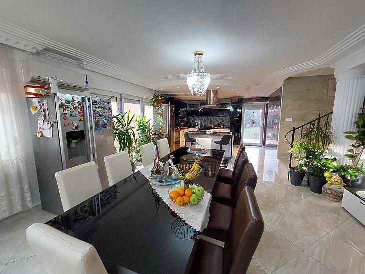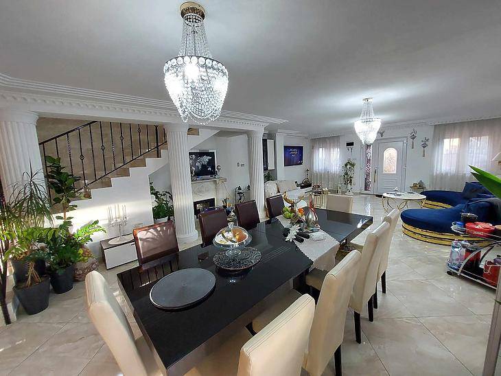 XV. KERÜLETBEN: RÁKOSPALOTÁN, CSALÁDI HÁZAS RÉSZEN, ELADÓ EGY 2014- BEN ÉPÜLT, ELŐKERTES, 180 M2, ÚJSZERŰ, 5 SZOBÁS, DUPLAKOMFORTOS CSALÁDI HÁZ, 360 M2 TELEKKEL, TÁGAS TERASSZAL, GARÁZZSAL.A HÁZ JELLEMZŐI: Az ingatlan belső 2 szintes, a földszinten egy hatalmas amerikai konyhás nappali és fürdőszoba található, az emeleten 4 szoba (egyik szoba gardróbbal is rendelkezik), fürdőszoba, közlekedő és erkély került kialakításra. A szobák laminált parkettásak, a többi helyiség járólapos.2020-ban teljes körű, esztétikai felújításon esett át a ház, a konyhai gépesítés-, a fürdőszoba burkolatok is cserélve lettek, és a teljes ház ki lett festve. A fűtést padlófűtés és kombi cirkó biztosítja, és hűtő-fűtő klíma is rendelkezésre áll. A kertre néző teraszt a nappaliból lehet megközelíteni. Tartozik a házhoz garázs, fedett autóbeálló és a telek végében kerti sütögető hely is kialakításre került.FINANSZÍROZÁS:Az ingatlan TEHERMENTES, hitelre is megvásárolható. Bankfüggetlen tanácsadóink, az ország összes pénzintézete közül gyorsan és gördülékenyen találja meg az Önnek legmegfelelőbb konstrukciót, egyedi kedvezményekkel. A hitel közvetítés díjmentes.A hirdetésben szereplő adatok tájékoztató jellegűek.Várjuk hívását munkanapokon 09.00- 19:00 óra között.Amennyiben eladná saját ingatlanát, több mint 16 éve működő, kifejezetten a kerületre szakosodott irodánktól, INGYENES ÉRTÉKBECSLÉST kérhet.