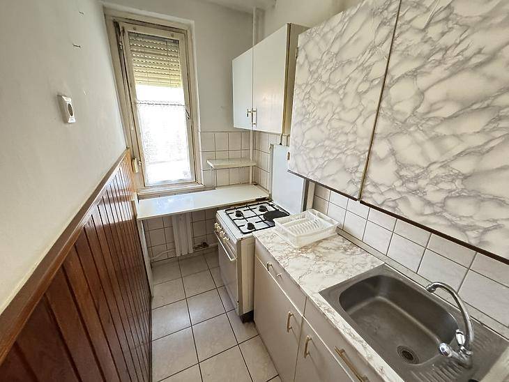 Újpesten, a XIII. kerület szomszédságában, csendes mellékutcában, 10 emeletes, liftes társasház I. emeletén, eladásra kínálunk egy 35 nm-es, 1+1 félszobás, beköltözhető állapotú, azonnal birtokbavehető panellakást.Az ingatlan 1/1-es tulajdonban van, per-teher és igénymentes. Átadási ideje: 0-10 nap! Közös költsége: 12.500.- Ft/hó.A társasházban megtörtént a bejárati kapuk, a lépcsőházi burkolatok és a postaládák cseréje.A lakásba több ponton záródó biztonsági bejárati ajtót építettek be. Az ablakok redőnnyel felszerelt, fa keretesek. A szobákban laminált padlót helyeztek le, a többi helyiséget járólappal burkolták. A fűtőtestek korszerűsítése megtörtént, ezeket egyedi hőmennyiségmérővel látták el, az átalánydíj 6.000.- Ft/hó.Pár perc sétatávon belül iskolák, óvodák, gyógyszertárak, háziorvosi rendelő, boltok, parkok, játszóterek, egyéb szolgáltatók és szolgáltatások mind fellelhetők.A közelben megtalálható a 20E, 120-as, 121-es, 25-ös, 30-as és a 204-es busz, valamint a 12-es, 14-es villamos megállója. Újpest-központ és az M3-as metróállomás gyalog 7 perc alatt elérhető. A belváros tömegközlekedéssel és autóval egyaránt rövid időn belül megközelíthető.A hirdetésben szereplő adatok tájékoztató jellegűek!Egyes ingatlanjaink esetében csere és ingatlanbeszámítás is lehetséges. Továbbá ügyfeleink részére keresünk eladó ingatlant, tulajdonrészt, vagy haszonélvezeti joggal terhelt ingatlant Budapesten és az agglomerációban. A részletekről kérjük érdeklődjön telefonon.Bankfüggetlen hiteltanácsadóink az ország összes pénzintézete közül gyorsan és gördülékenyen találják meg az Önnek legmegfelelőbb konstrukciót, egyedi, személyre szabott kedvezményekkel.A KÖZVETÍTÉS VEVŐINK RÉSZÉRE DÍJMENTES!
