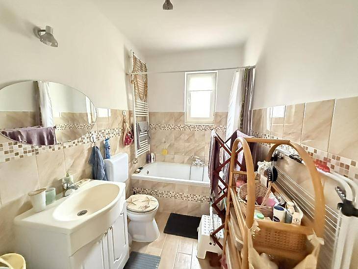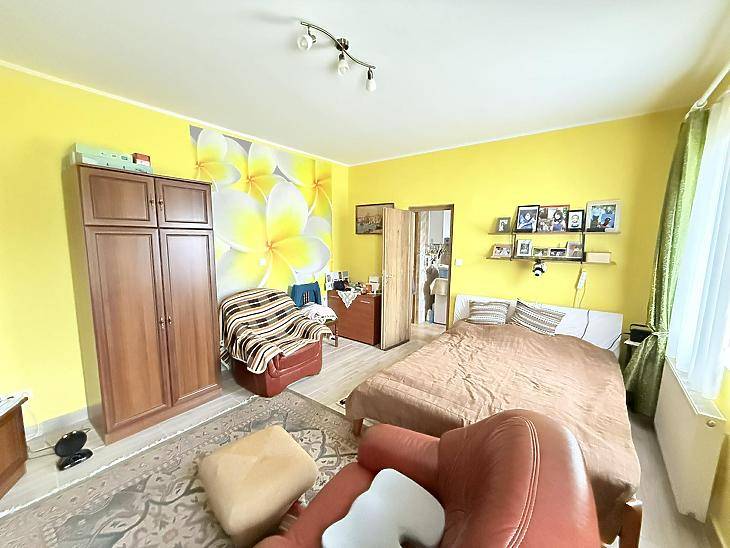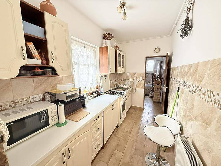 A XVI. kerület kedvelt részén, Sashalmon, családi házas övezetben kínálunk megvételre egy 57 nm-es, 2 szobás, gardróbos tégla lakást, amelyhez kertkapcsolat kialakításának lehetősége tartozik.A kert jelenleg még nem megközelíthető közvetlenül a lakásból, azonban az egyik szobában teraszajtó beépítésével közvetlen kijárat alakítható ki a kert irányába.Az ingatlanrólAz 1960-ban épült, szigetelt, fafödémes, cserépfedésű ház nyugodt, családi házas környezetben található. A lakás világos, jó elosztású, minden helyisége praktikusan használható.A fűtést és a meleg vizet kondenzációs kazán biztosítja, a nyílászárók korszerű, műanyag, hangszigetelt kivitelűek. A burkolatok jó állapotú járólapok, a vizes helyiségek rendezettek. Az ingatlan 2020-ban teljes körű műszaki felújításon esett át, melynek során megtörtént a víz- és villanyvezetékek cseréje, valamint a kazán cseréje is.Bővítési lehetőségek:A tetőszerkezet kiváló alapot nyújt további lakótér kialakítására – akár szobák beépítésére, akár többgenerációs otthon létrehozására.A kert jelenleg közös használatú, a telekmegosztási szerződés elkészülte után pedig lehetőség nyílik annak egy részét saját használatú kertként leválasztani.Elrendezés• előszoba• étkező• konyha• 2 szoba• gardrób• fürdőszoba mellékhelyiséggel ParkolásA telken belül megoldható.KözlekedésPár perc sétára elérhető több buszjárat és a H8–H9 HÉV(44, 45, 92, 92A, 176E, 276E, 908).FinanszírozásAz ingatlan támogatott hitelre is megvásárolható, díjmentes bankfüggetlen tanácsadással. Irányár: 71,9 millió FtVevőink részére a közvetítés díjtalan A hirdetésben szereplő adatok tájékoztató jellegűek.