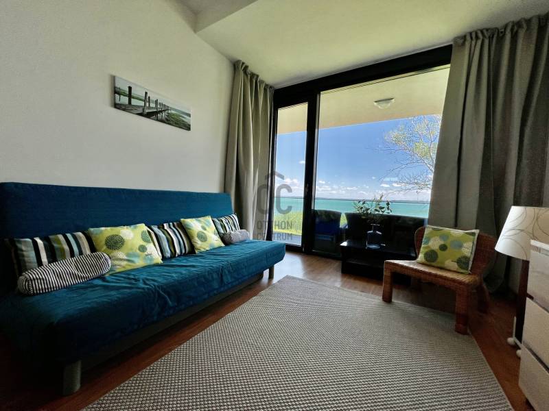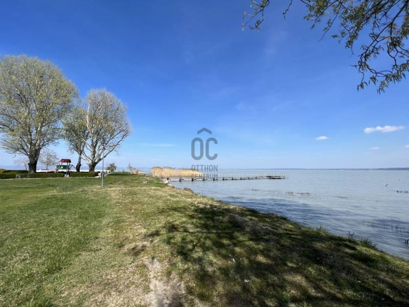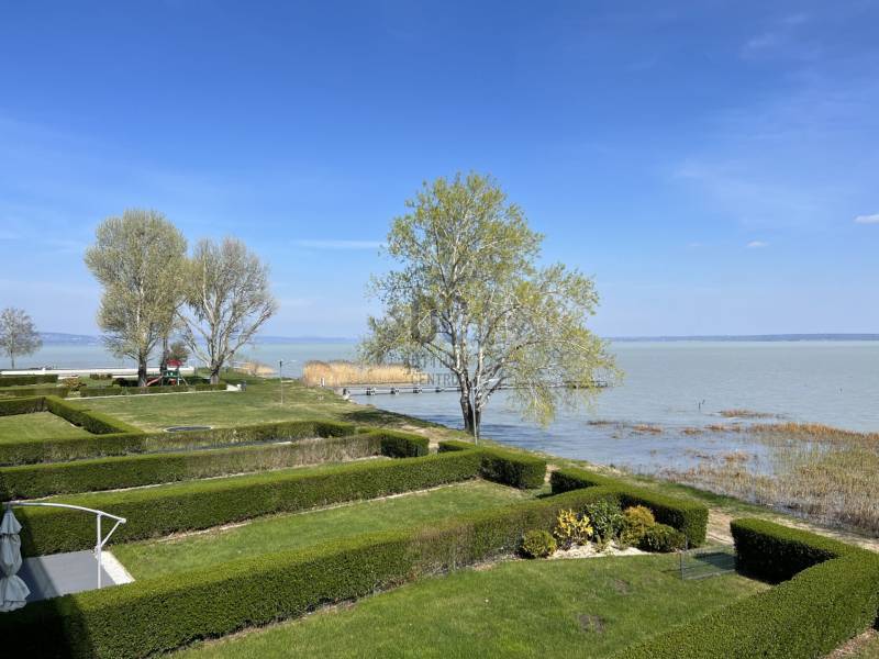 Megvételre kínálom ezt a ritka, keleti, balatoni panorámával rendelkező, 77 nm-es, 3 szobás, első emeleti luxus nyaralót. A lakás kiváló minőségű társasházban található, közvetlenül a Balaton partján, festői környezetben.Szeretne családjával, barátaival egy csodás helyszínen kikapcsolódni, minden kényelem és komfort közepette?Akkor ezt a lakást látnia kell!Az ingatlan főbb jellemzői:•Privát kert: A bejárat felől egy 73 nm-es, gondozott privát kert várja a tulajdonosát.•Kertkapcsolatos terasz: A bejáratnál egy 7 nm-es terasz biztosítja a kertkapcsolatot.•Balatoni terasz: Egy 13 nm-es, örök panorámás terasz nyílik a Balatonra.•Tároló: A bejárat mellett található saját tulajdonú 3 nm-es tároló.•Parkoló: A lakáshoz közeli, kényelmes parkolóhely.Belső Terek•Előtér: Beépített szekrény és mosógép.•Amerikai konyha: 12 nm-es, mosogatógéppel és étkezővel.•Nappali: 21 nm-es, padlótól plafonig érő üvegfallal, lenyűgöző panorámával.•Hálószobák: Kettő hálószoba, az egyik a privát kertre, a másik a Balatonra néző kilátással.•Fürdőszoba: Káddal és WC-vel.•Különálló WC: Kényelmes elrendezésű.Műszaki tartalom•Melegvíz ellátás: Beépített 120 literes Ariston villanybojler.•Fűtés-klíma: Norvég Nobo fűtőpanel, Hűtő-fűtő fan-coil berendezések.•Kandalló lehetőség: Nappaliban kialakított kémény.Közösségi szolgáltatások•Biztonság: 0-24 órás portaszolgálat.•Kényelmi szolgáltatások: 25 méteres feszített víztükrű medence, két gyermekmedence, játszótér, gondozott kert, saját strand és stég.A közös költség tartalmazza a portaszolgálatot, közös helyiségek takarítását, kertész díját, medence karbantartást, felújítási alapot, szemétszállítást, víz-, hűtés-fűtés átalányt.Az ingatlan eladási ára nem tartalmazza a parkolóhelyet és a tárolót.•Parkolóhely ára: 6 millió Ft•Tároló ára: 4 millió FtEz az ingatlan tökéletes választás, legyen szó saját használatról, kiadásról, szezonális vagy állandó lakhatásról. Az ingatlan frekventált lokációjának, örök panorámájának és magas minőségű kivitelezésének köszönhetően folyamatos értéknövekedés várható.Ne hagyja ki ezt a kivételes lehetőséget! Komfort, kényelem, minőség és egy álomszerű környezet várja új tulajdonosát.